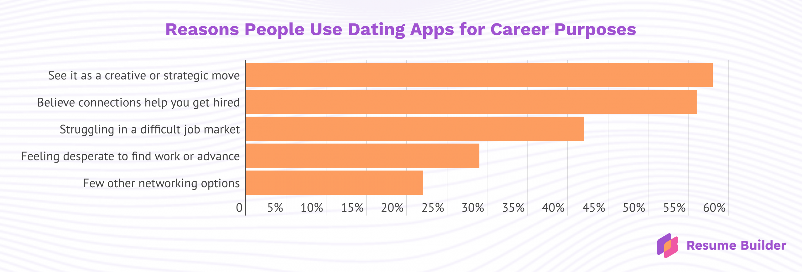 More than half of those who turned to dating apps for professional reasons say they did so because they believed personal connections were the best way to get hired (56%) or viewed it as a creative or strategic approach (58%). Others say they were motivated by a difficult job market (42%), desperation to find work or advance in their careers (29%), or a lack of networking opportunities elsewhere (22%).