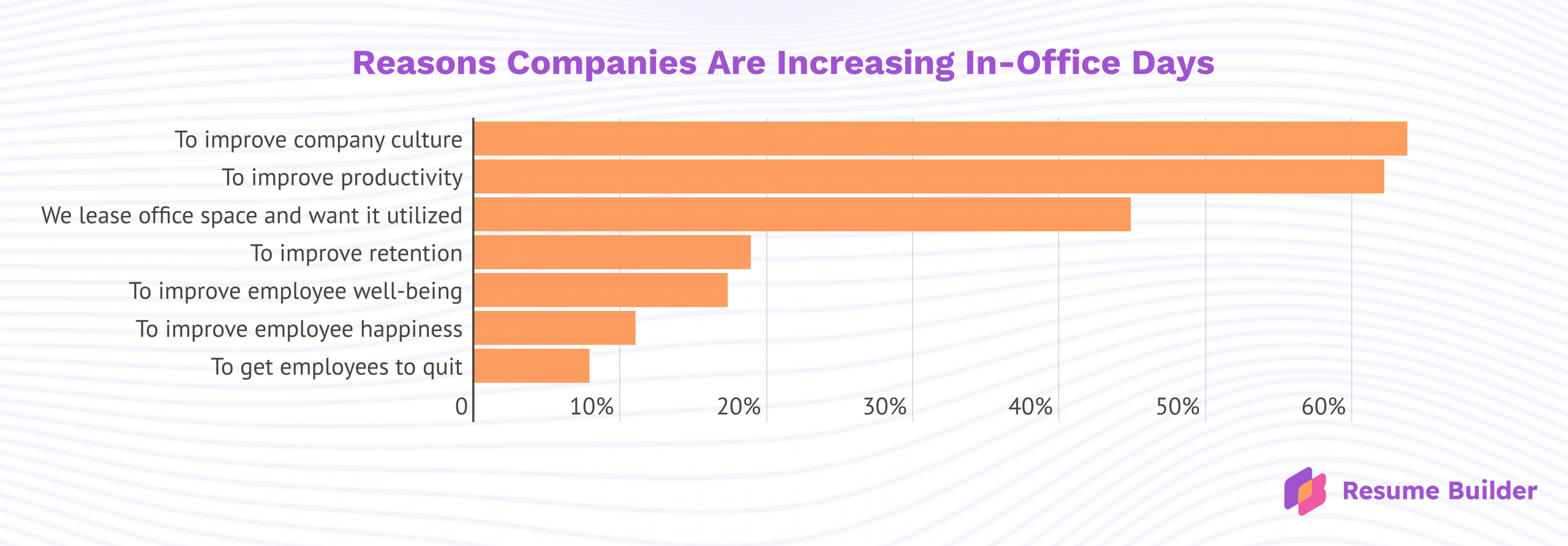 - Companies that plan to increase office days are doing so to improve productivity and company culture
