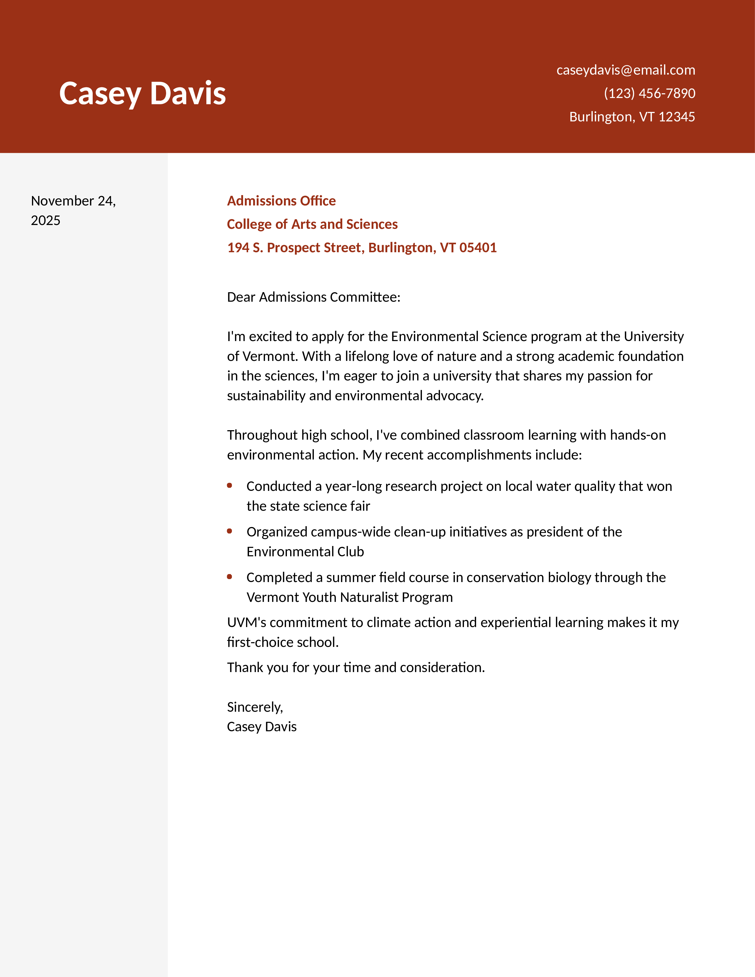 Add a short list of bullet points to demonstrate your skill and success in key work areas for your target job. As with the highlight that opens your cover letter, feel free to cite experiences in or outside your degree program. But also consider using this section to call out any relevant soft skills you’ve developed as a college student, such as diligence or collaboration.
