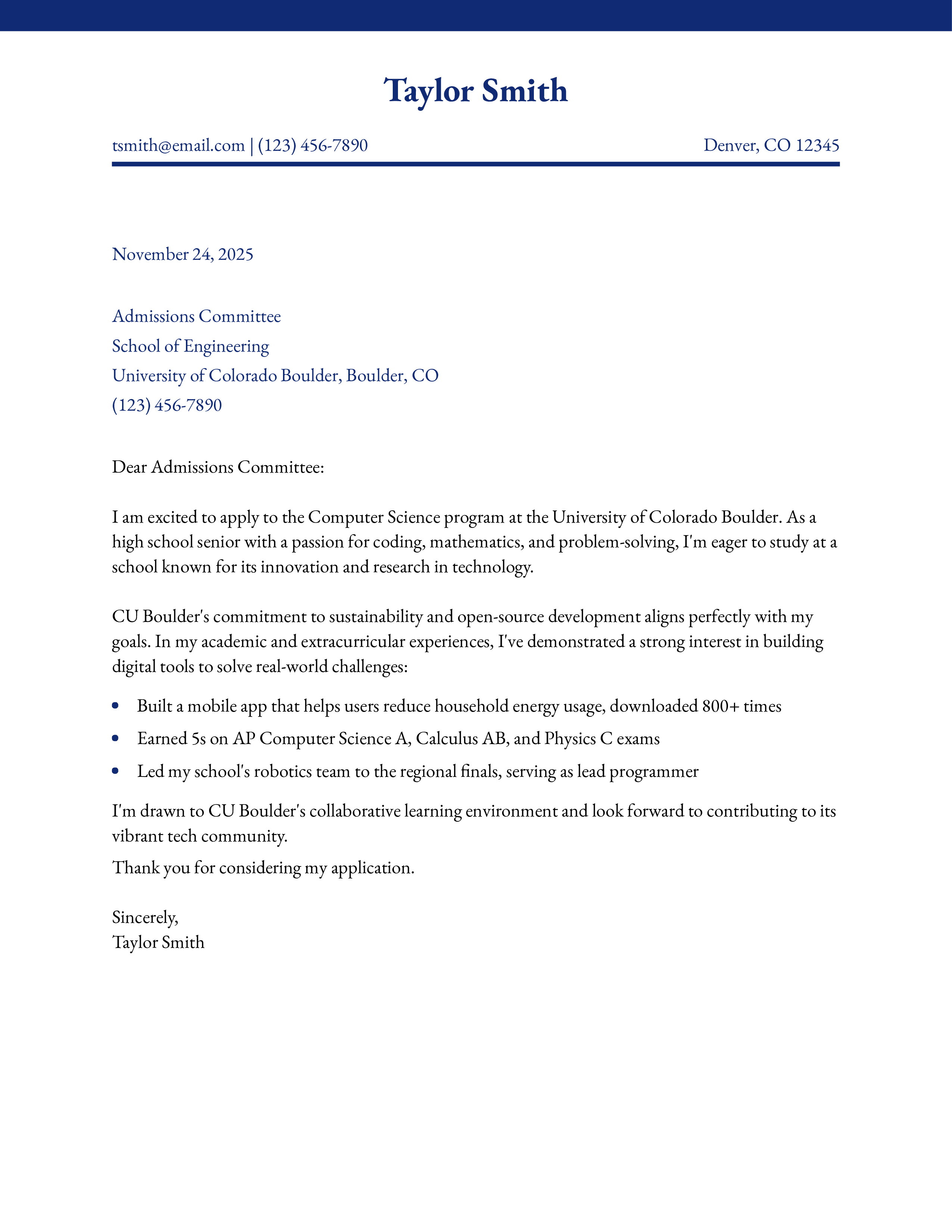 When writing your college cover letter, focus on how your higher education or other experiences have prepared you for your target job. Express your interest in the employer, and cite relevant skills and qualities you’ve developed as a college student, such as research, creativity, or time management.