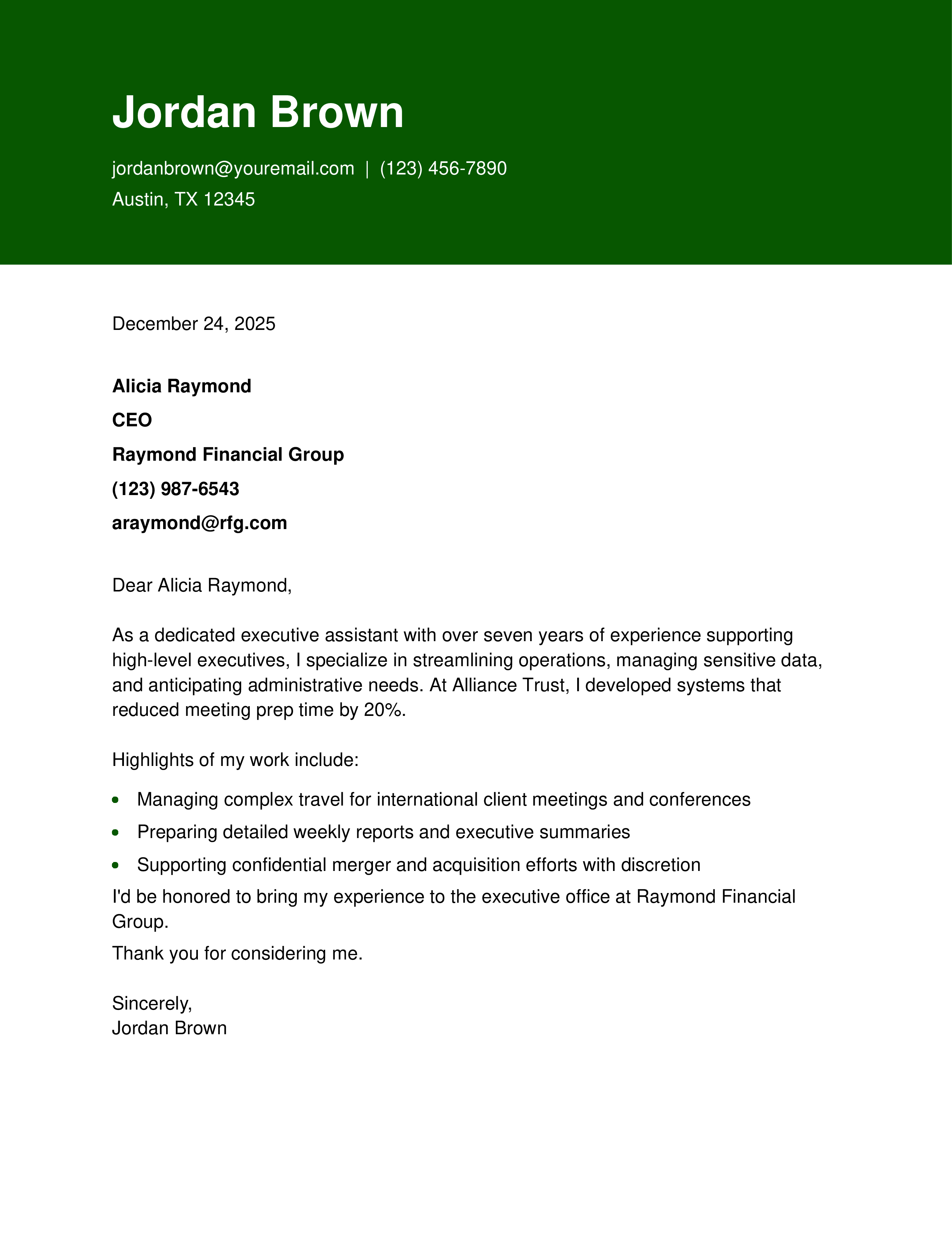 Executive Assistant Cover Letter