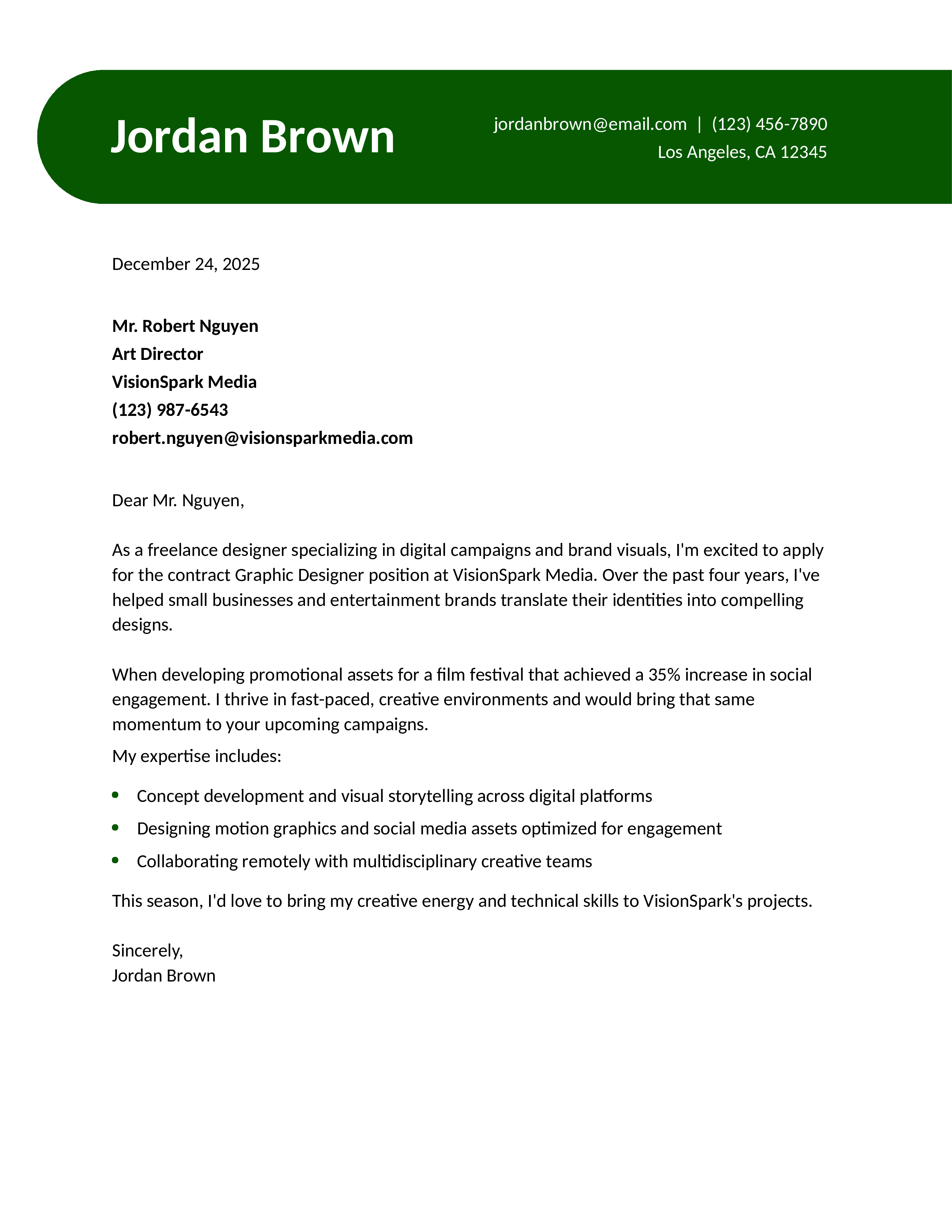 Freelance Graphic Designer Cover Letter