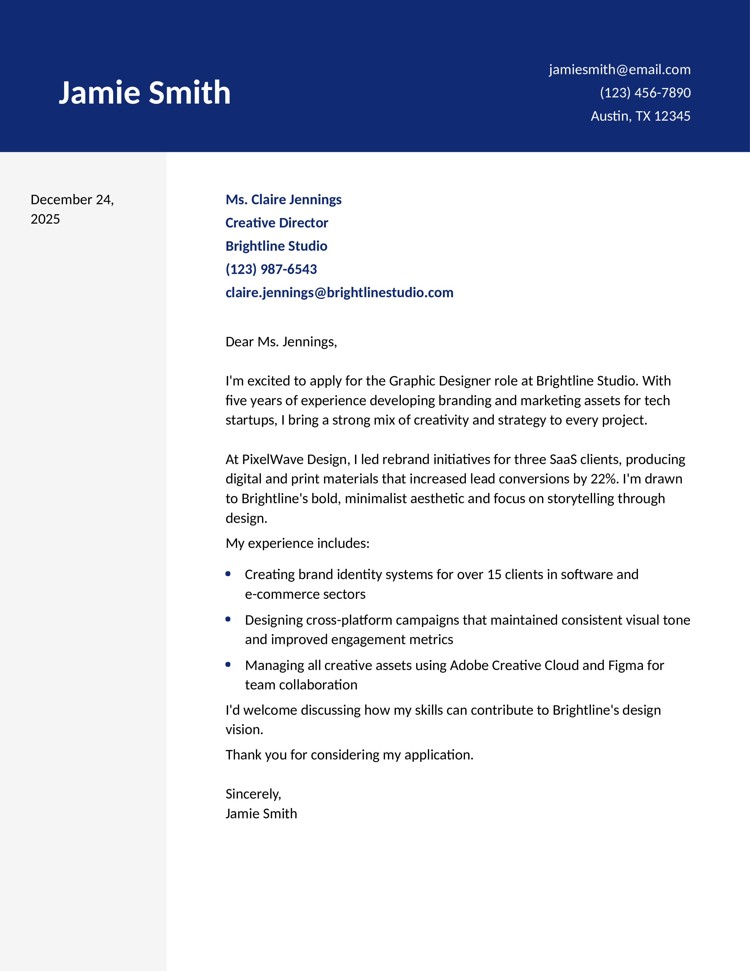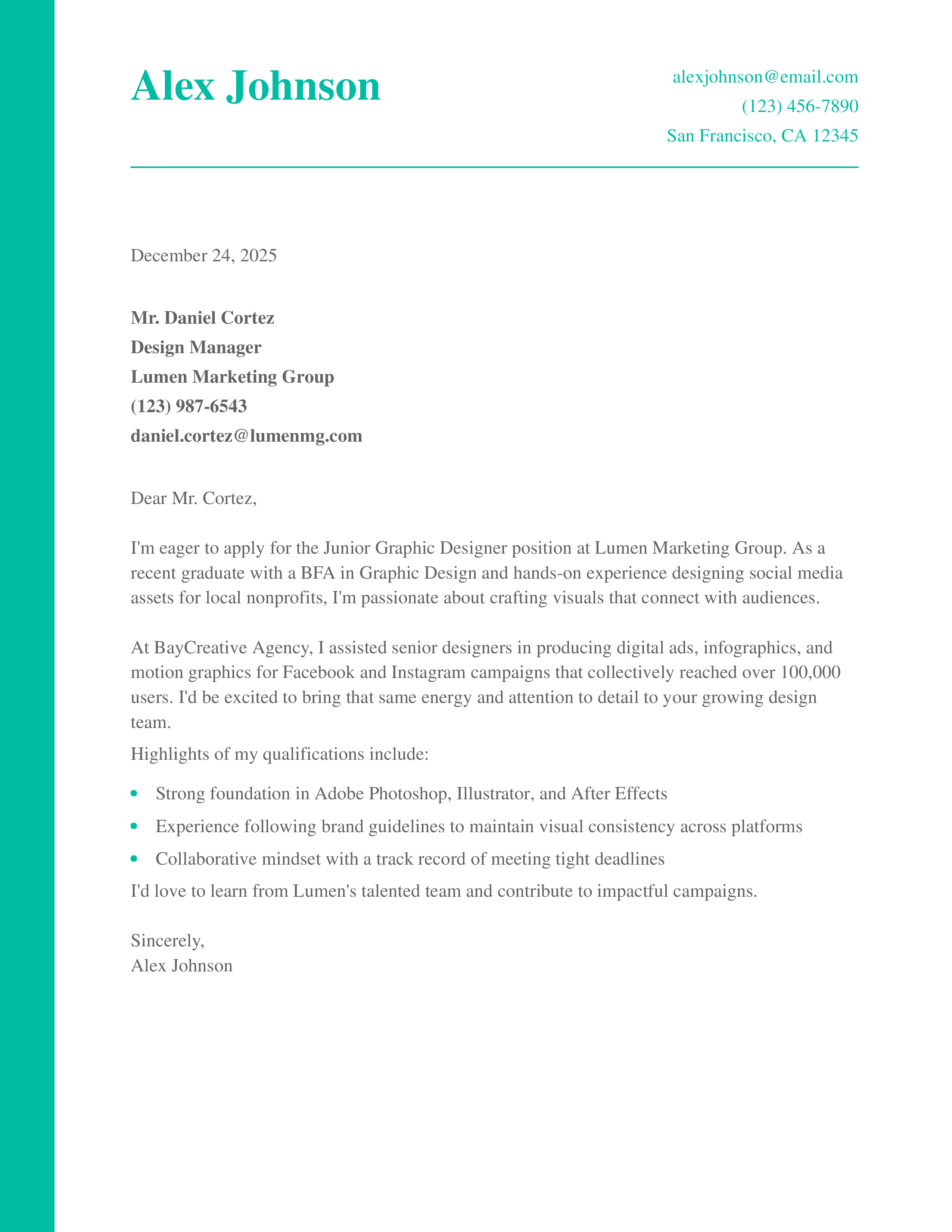 Junior Graphic Designer Cover Letter