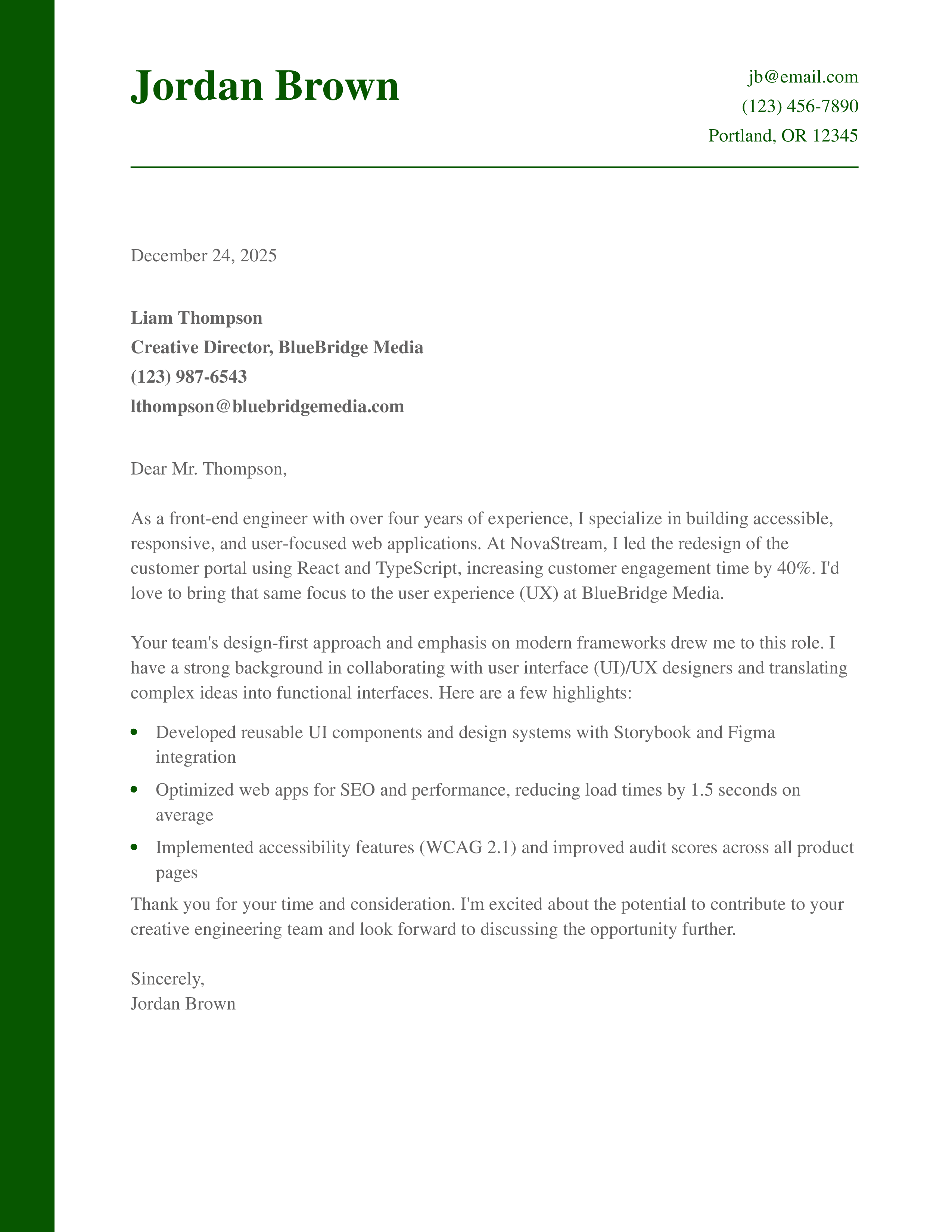 Front-End Software Engineer Cover Letter