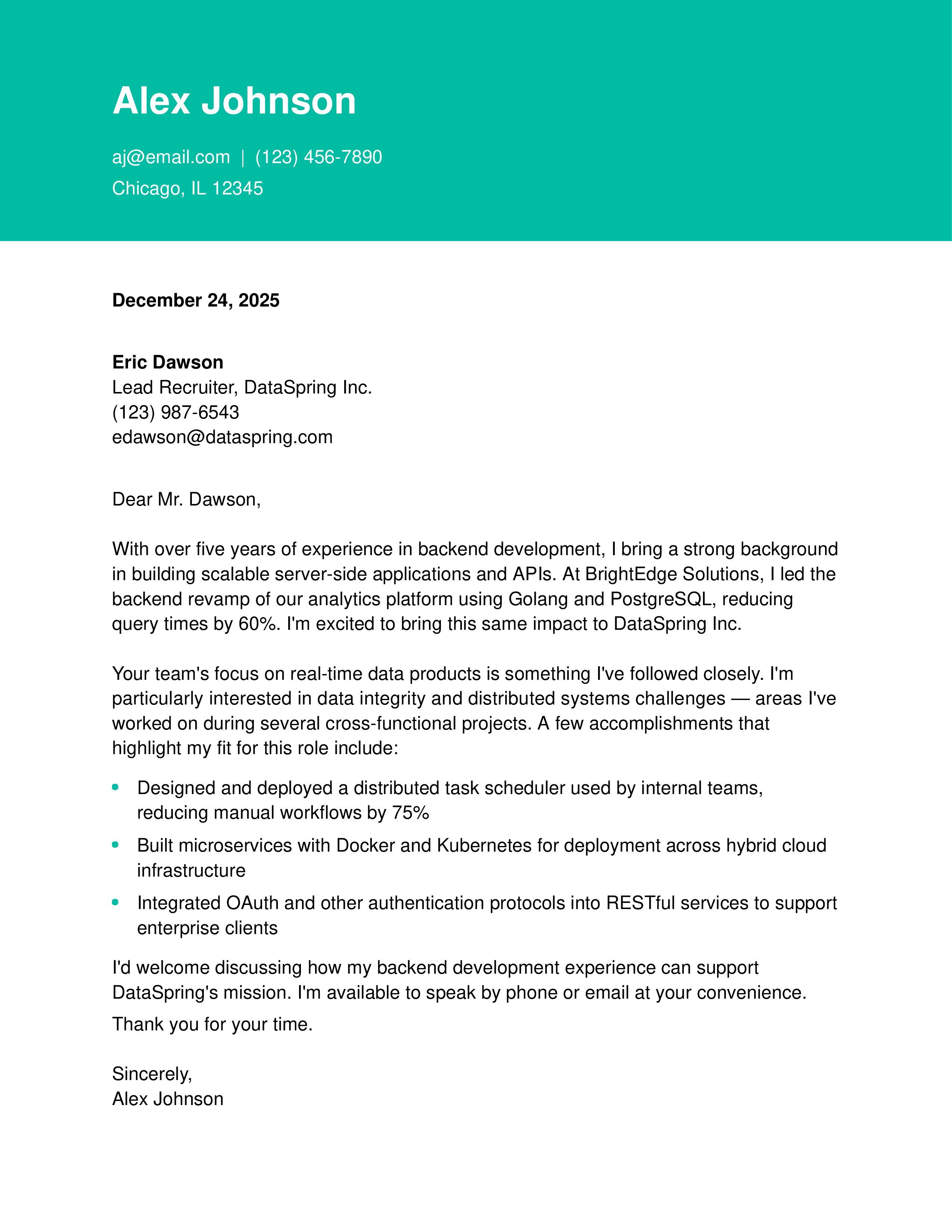 Mid-Level Backend Engineer Cover Letter