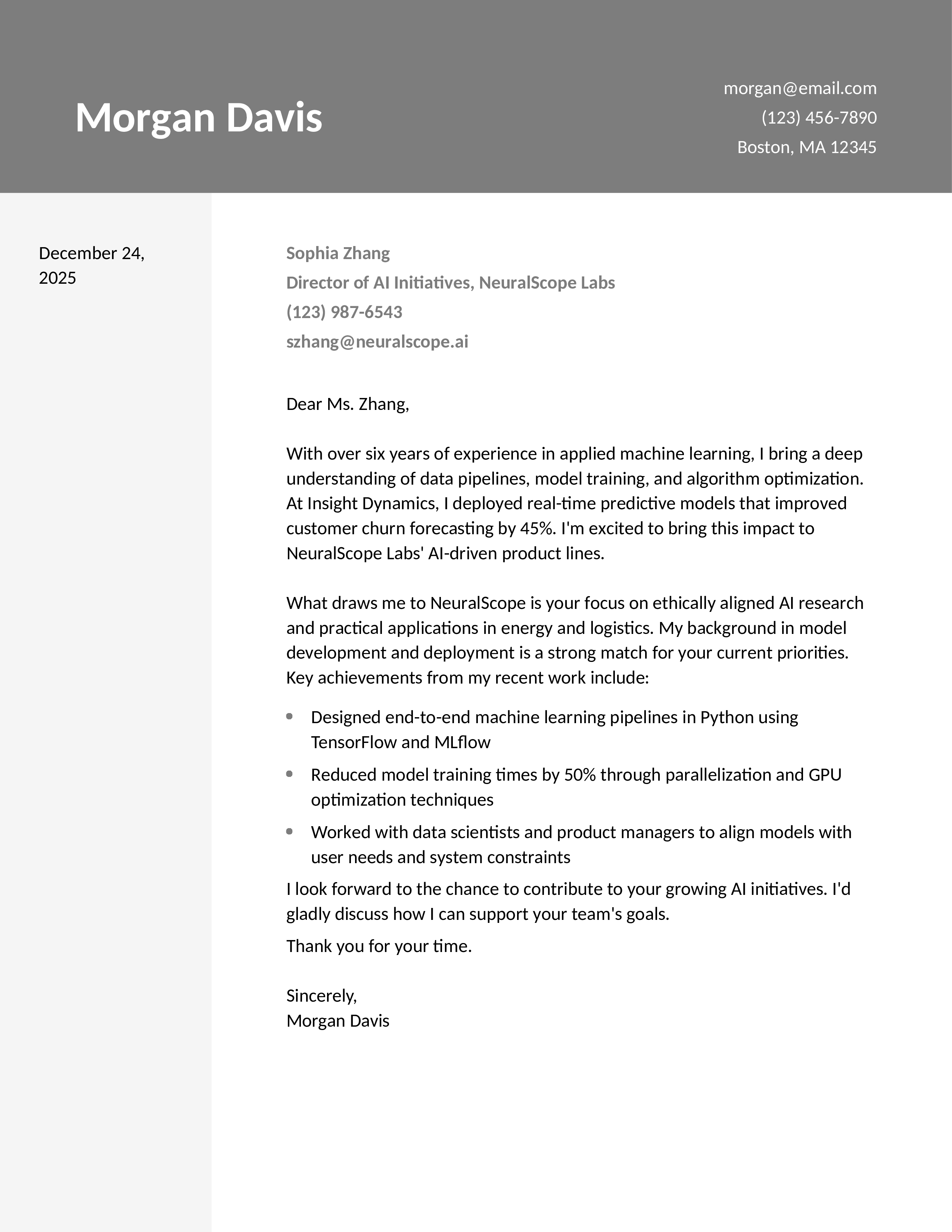 Software Engineer for AI/ML Projects Cover Letter