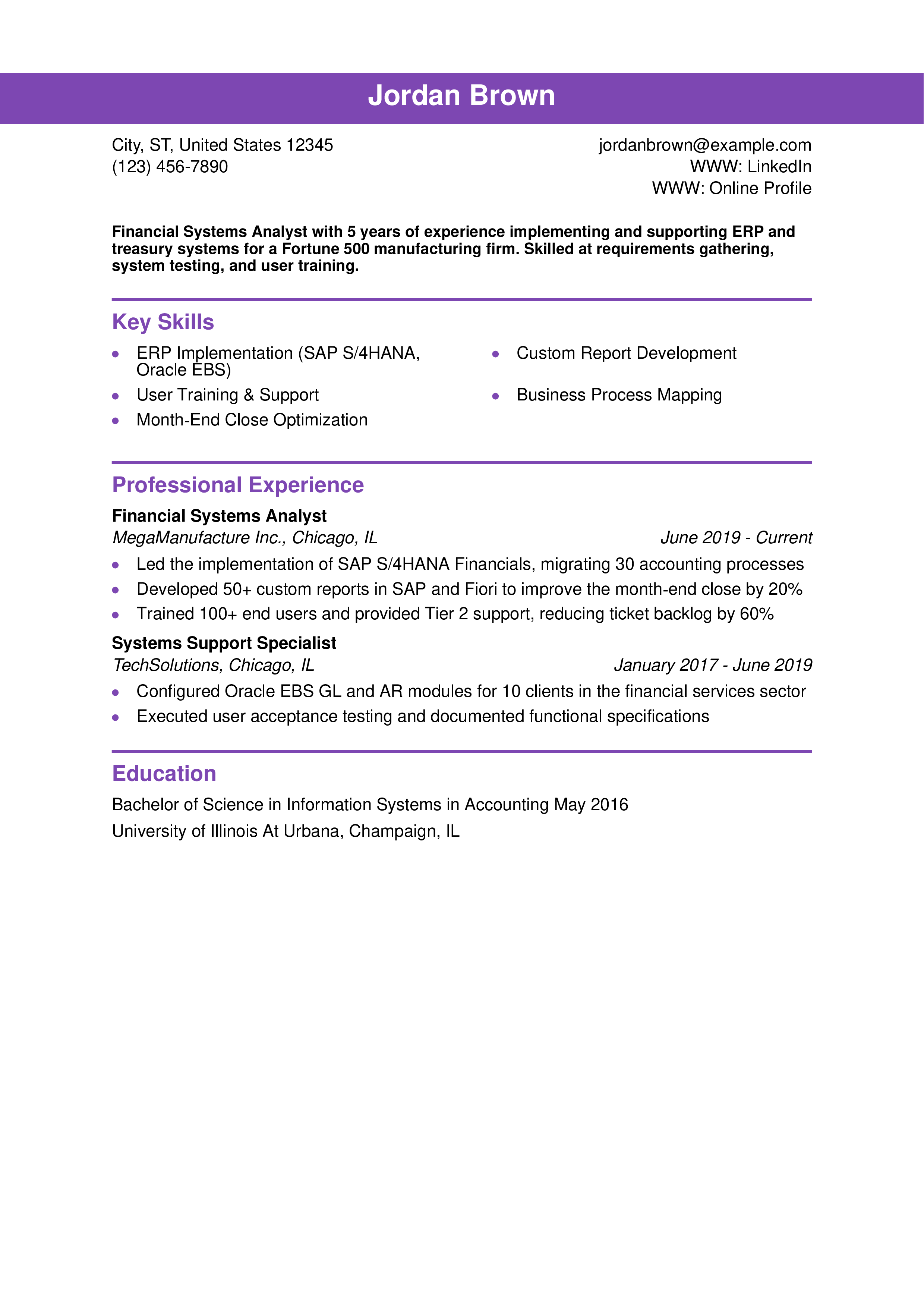 Quantify process improvements (e.g., “month‐end close by 20%”) to showcase system proficiency; learn more in the best resume formats.