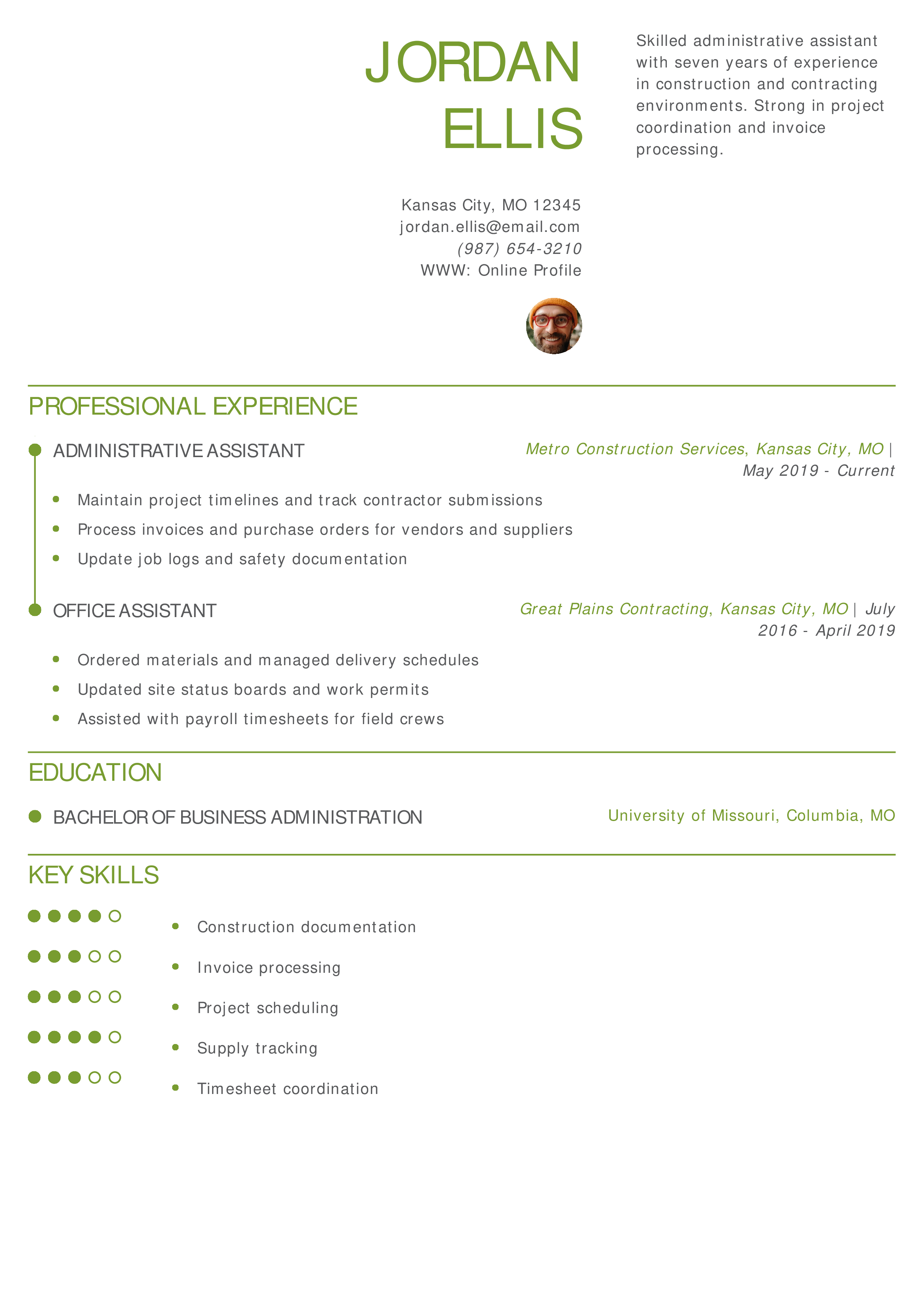 This resume focuses on industry-specific administrative experience, such as managing construction documents and field coordination. For advice on matching your resume to the job, visit how to align your resume with a job description.
