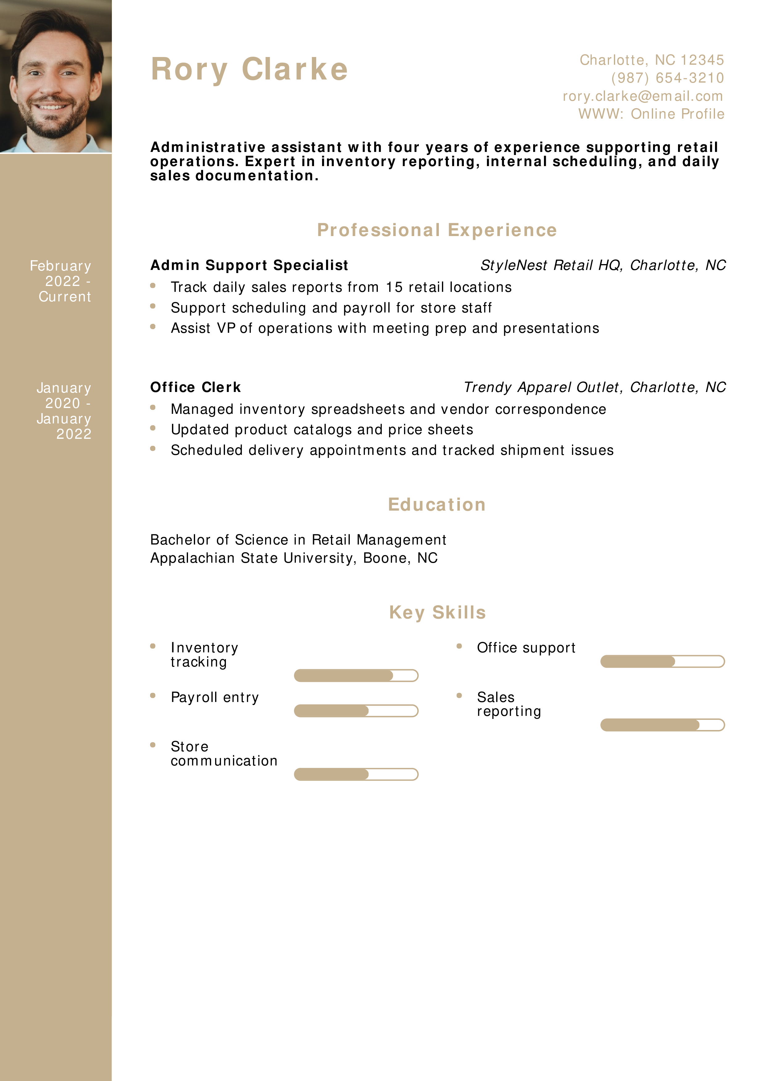 This resume aligns administrative skills with the needs of a retail environment. To learn how to highlight relevant technical tools, check out technical skills for resume.