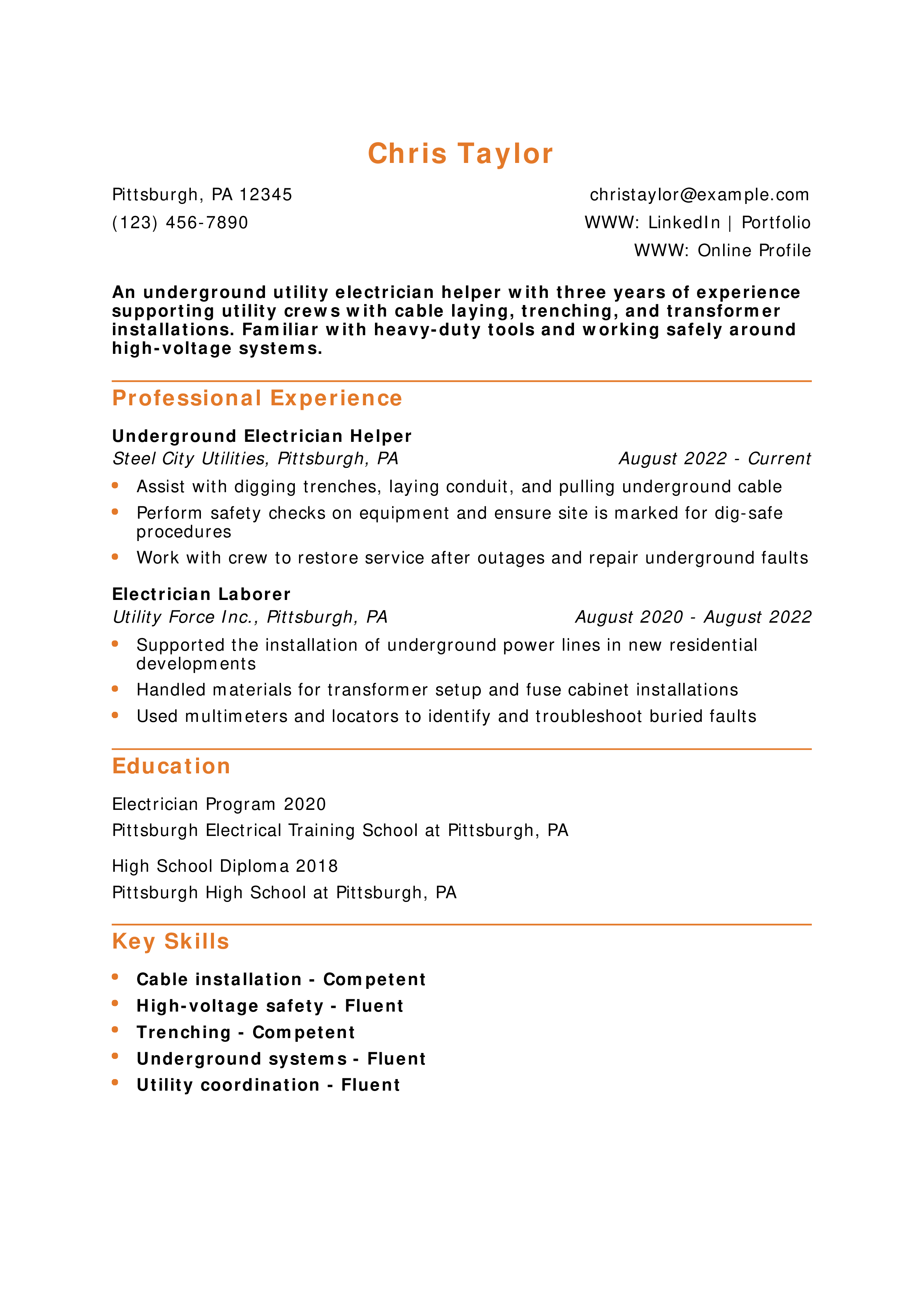 This resume is strong because it focuses on utility-specific experience and safety in high-risk environments. For more advice, read How Far Back Should a Resume Go.