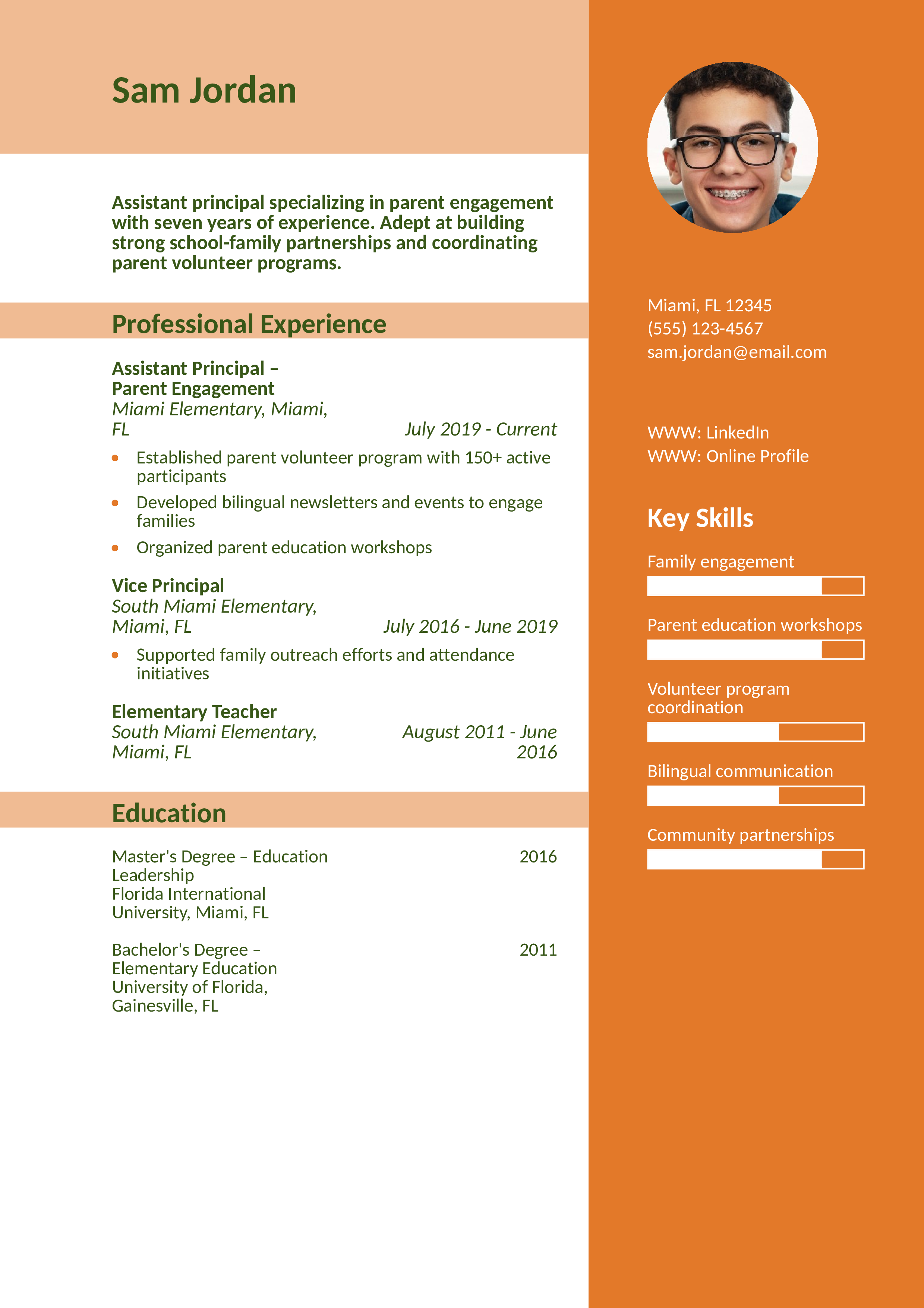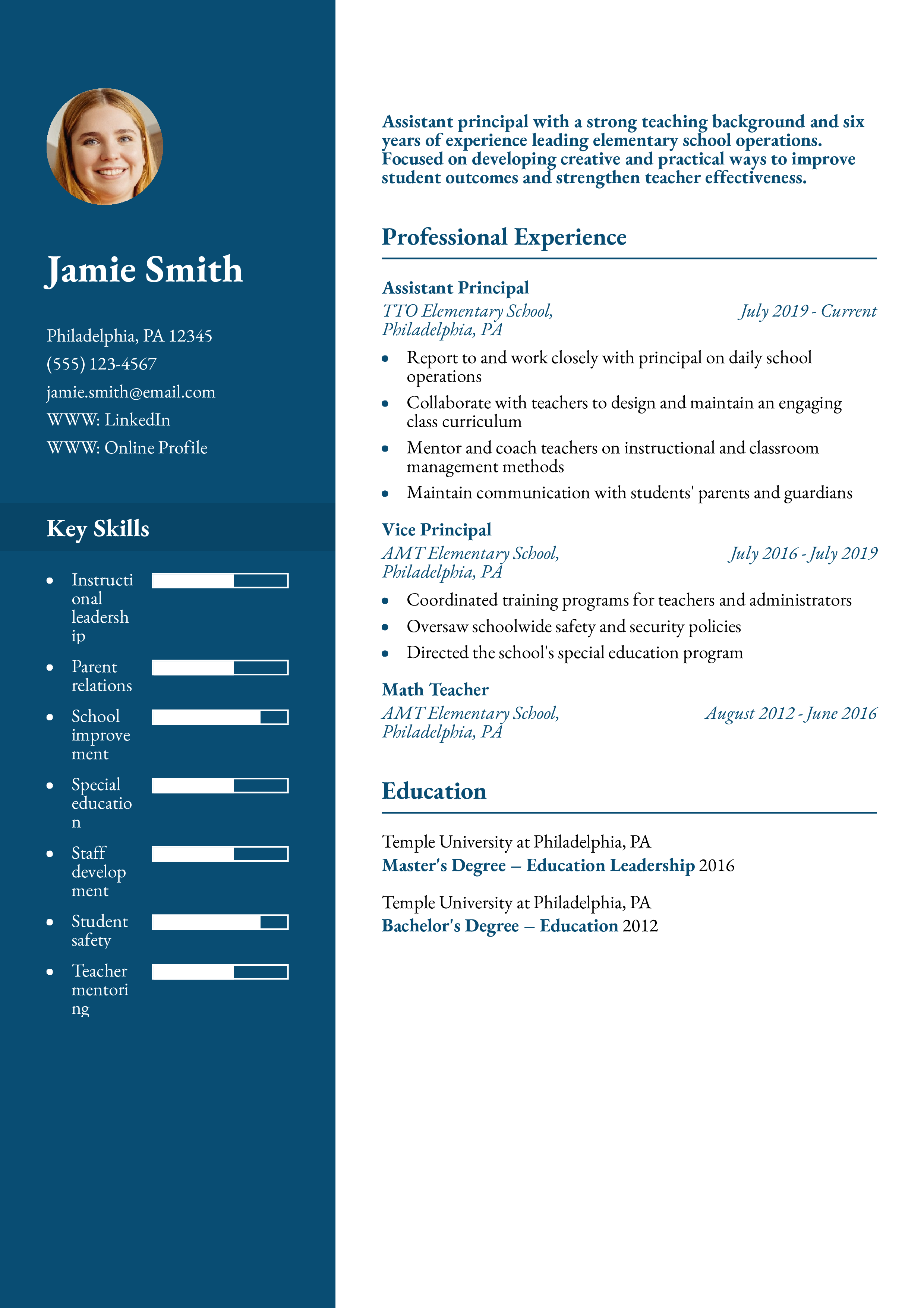 To craft an eye-catching assistant principal resume, you’ll need to highlight the most compelling aspects of your career within the education field. Feature accomplishments that convey your ability to mentor teachers and build positive relationships with students and parents. Emphasize your background in evaluating curriculums and implementing cutting-edge teaching methodologies. This guide provides valuable tips and insights to help you build an accomplishment-driven resume.