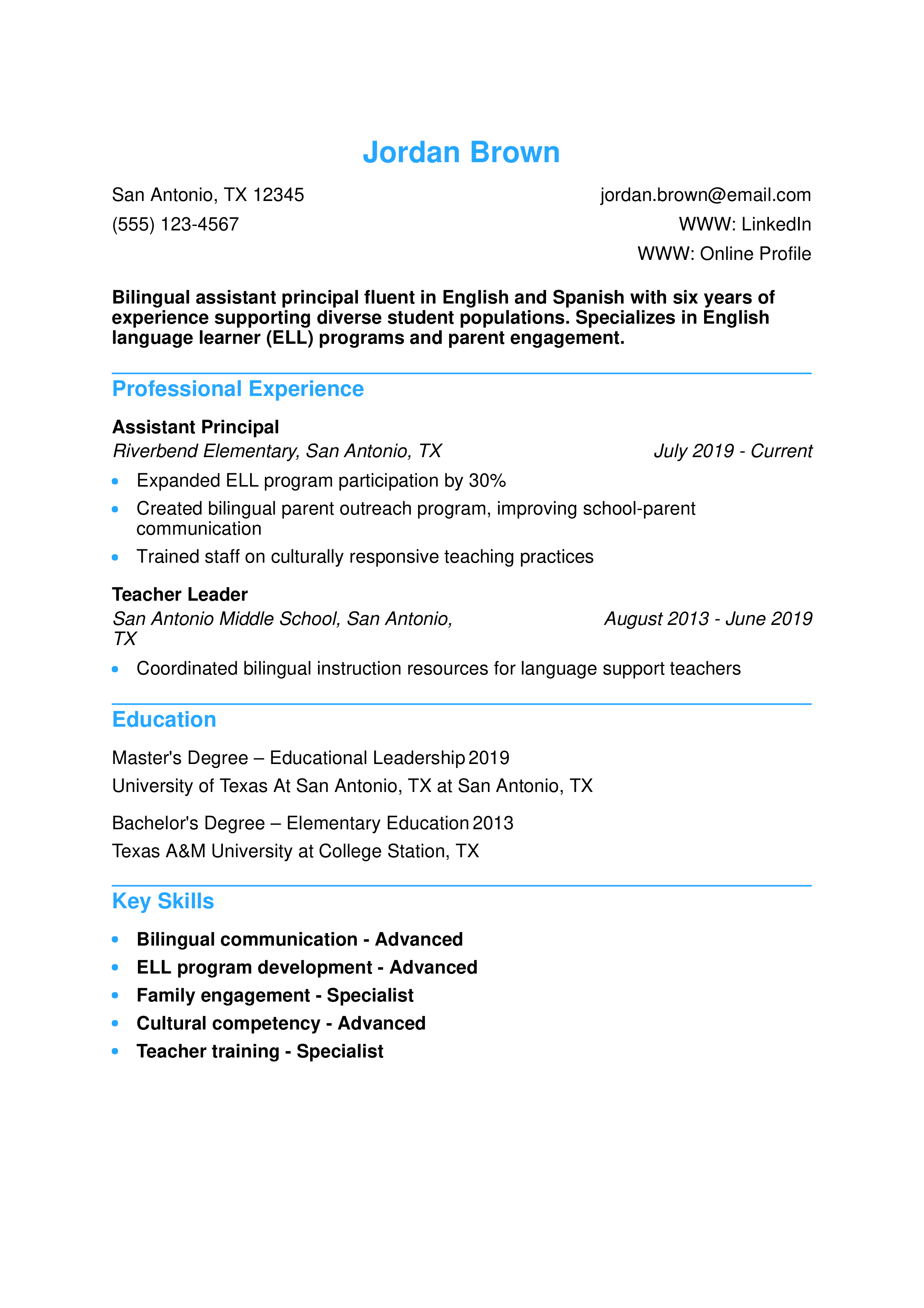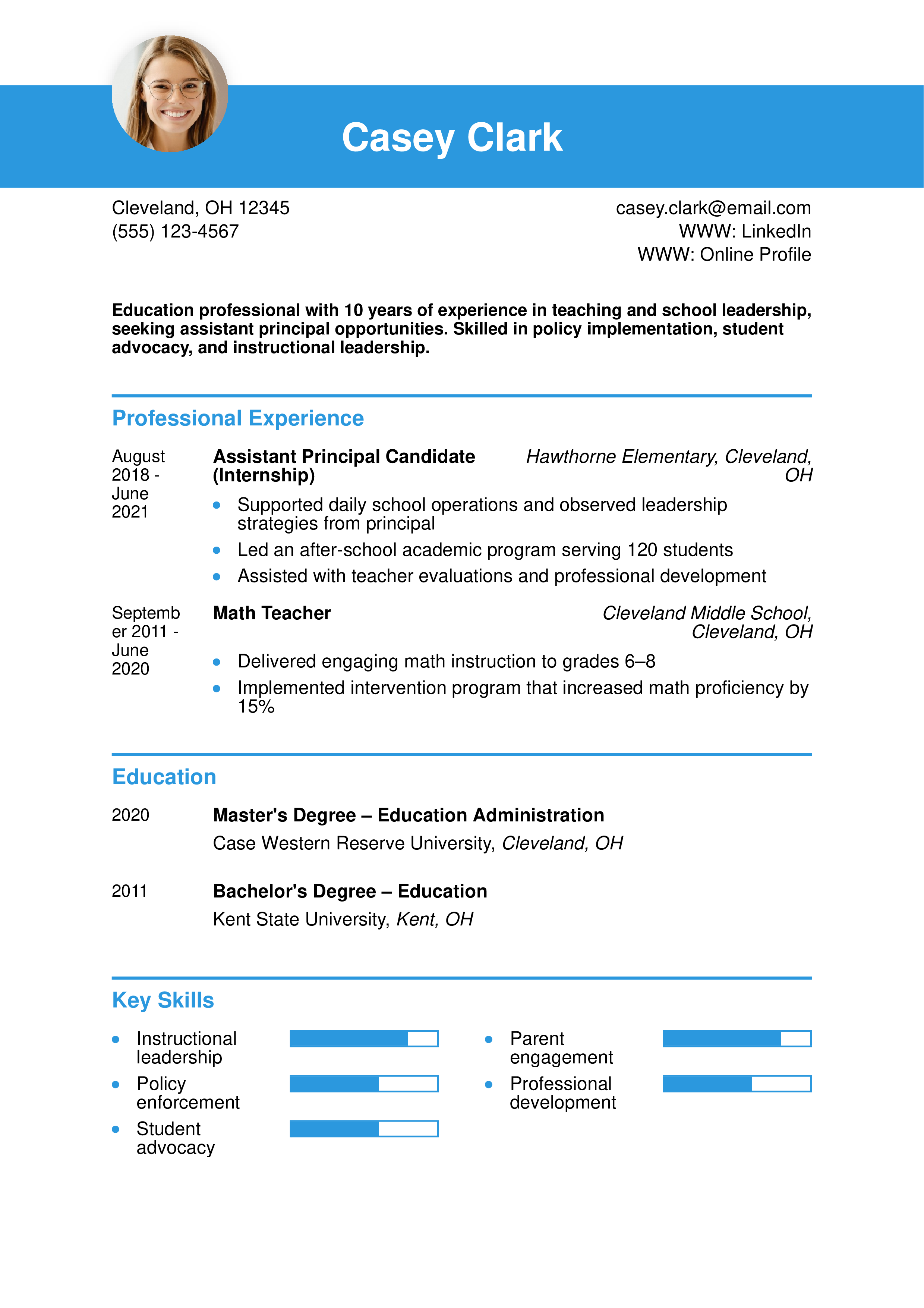 Generally, an assistant principal resume should be one page for candidates with fewer than 10 years of experience. A two-page resume is acceptable if you’re a seasoned professional with extensive accomplishments—but only if it provides meaningful details that strengthen your application. Tailor your content to the job, focusing on your most relevant qualifications.