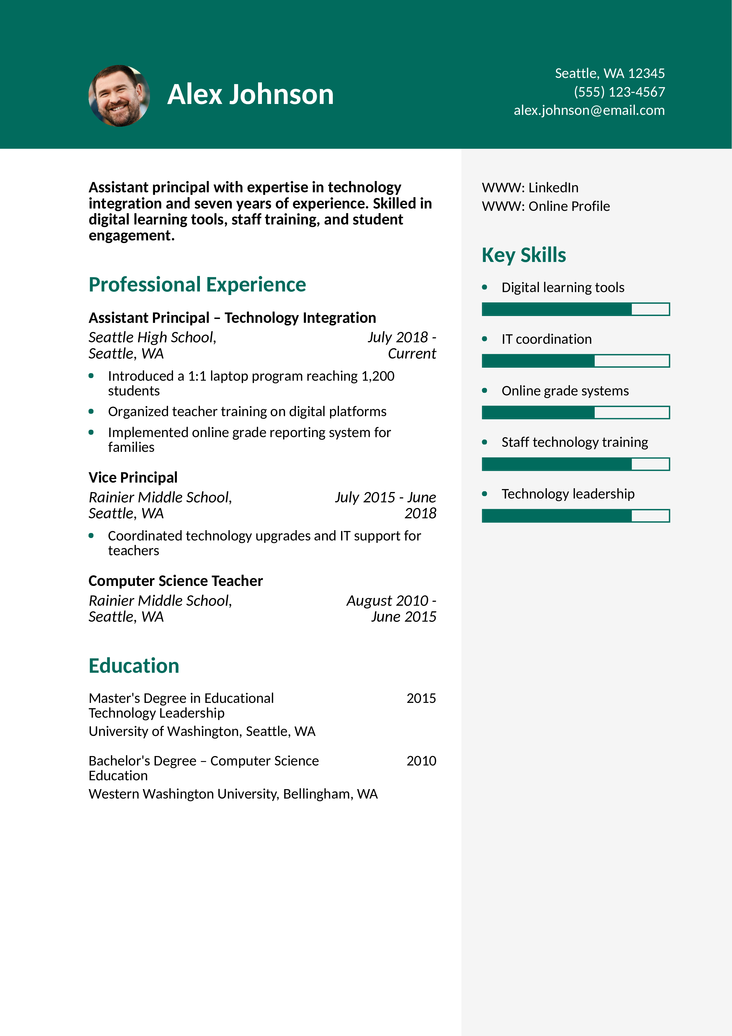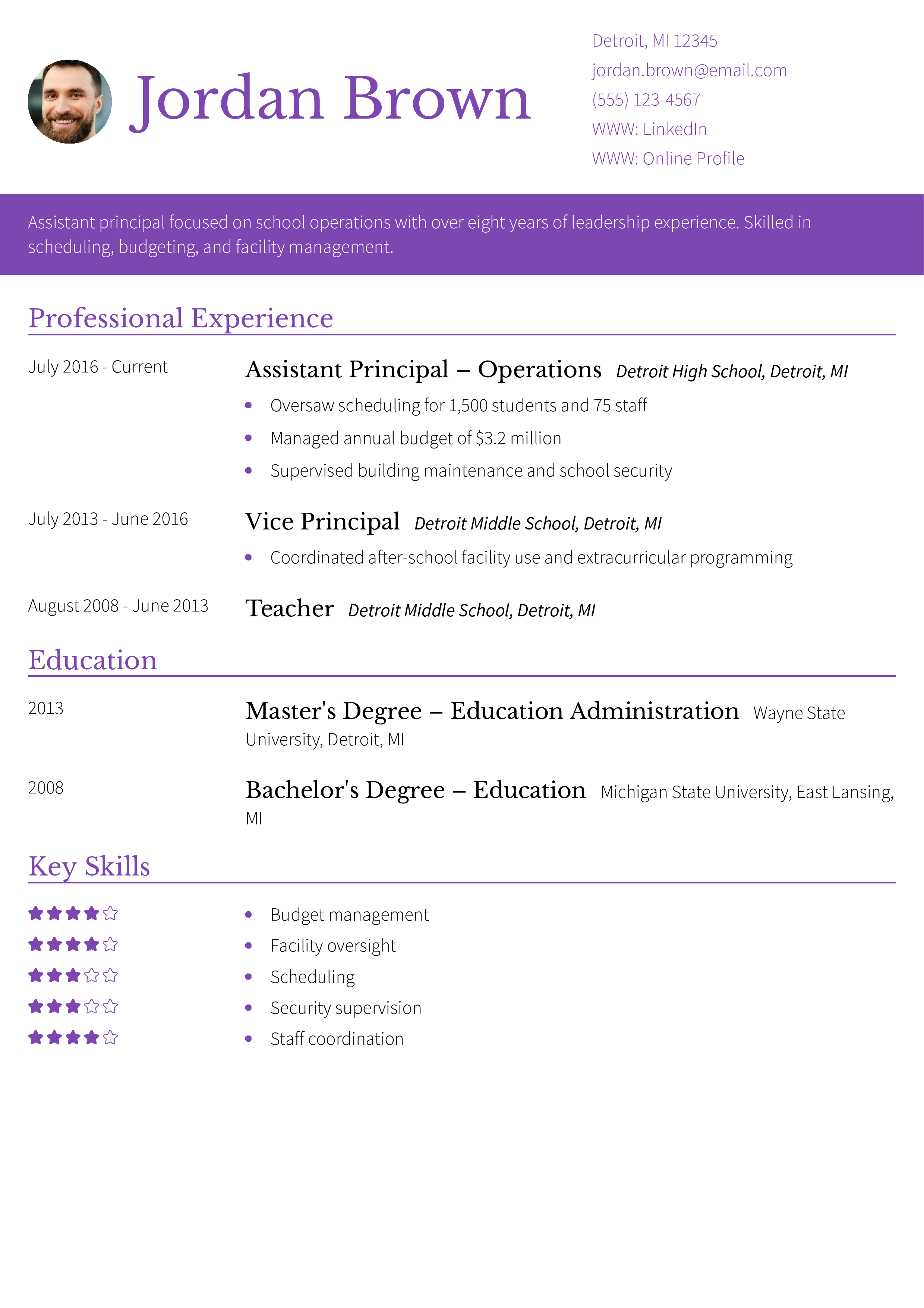 According to the U.S. Bureau of Labor Statistics, employment for elementary, middle, and high school principals is projected to grow 5% from 2021 to 2031, about as fast as the average for all occupations. However, only a fraction of these will be specifically assistant principal positions, making these jobs even more competitive. To maximize your chances of landing the interview, you must carefully align your resume with the role you’re applying for.