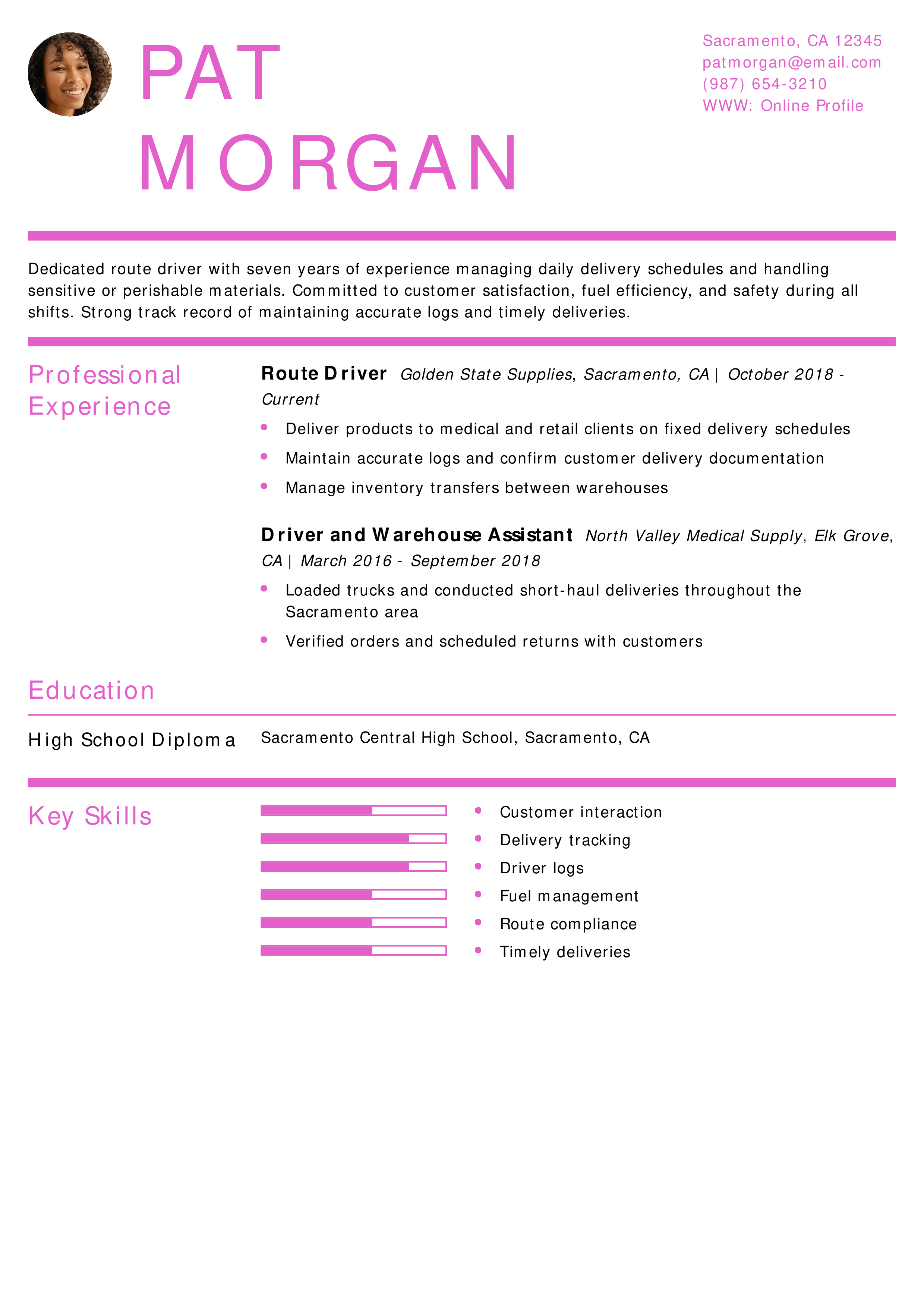 Her resume showcases reliability and customer-facing experience, which is crucial for route driver roles. The consistent recordkeeping and scheduling experience adds value. For more ideas on refining your resume sections, check out resume outline examples.
