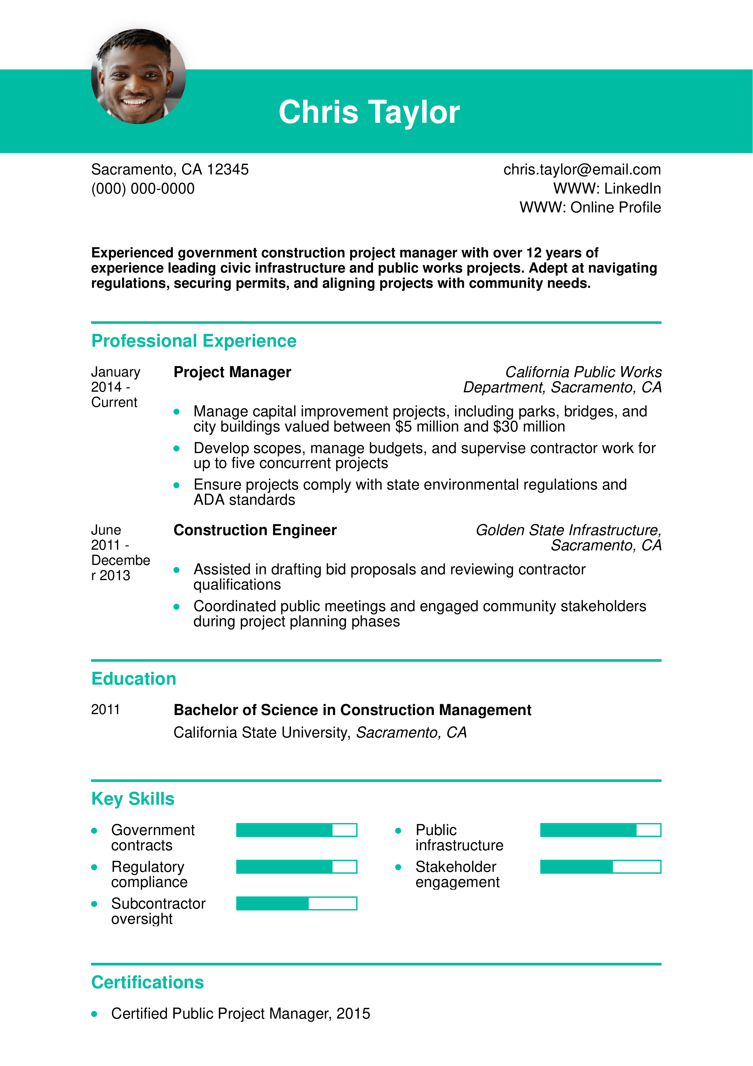 Government Construction Project Manager Resume