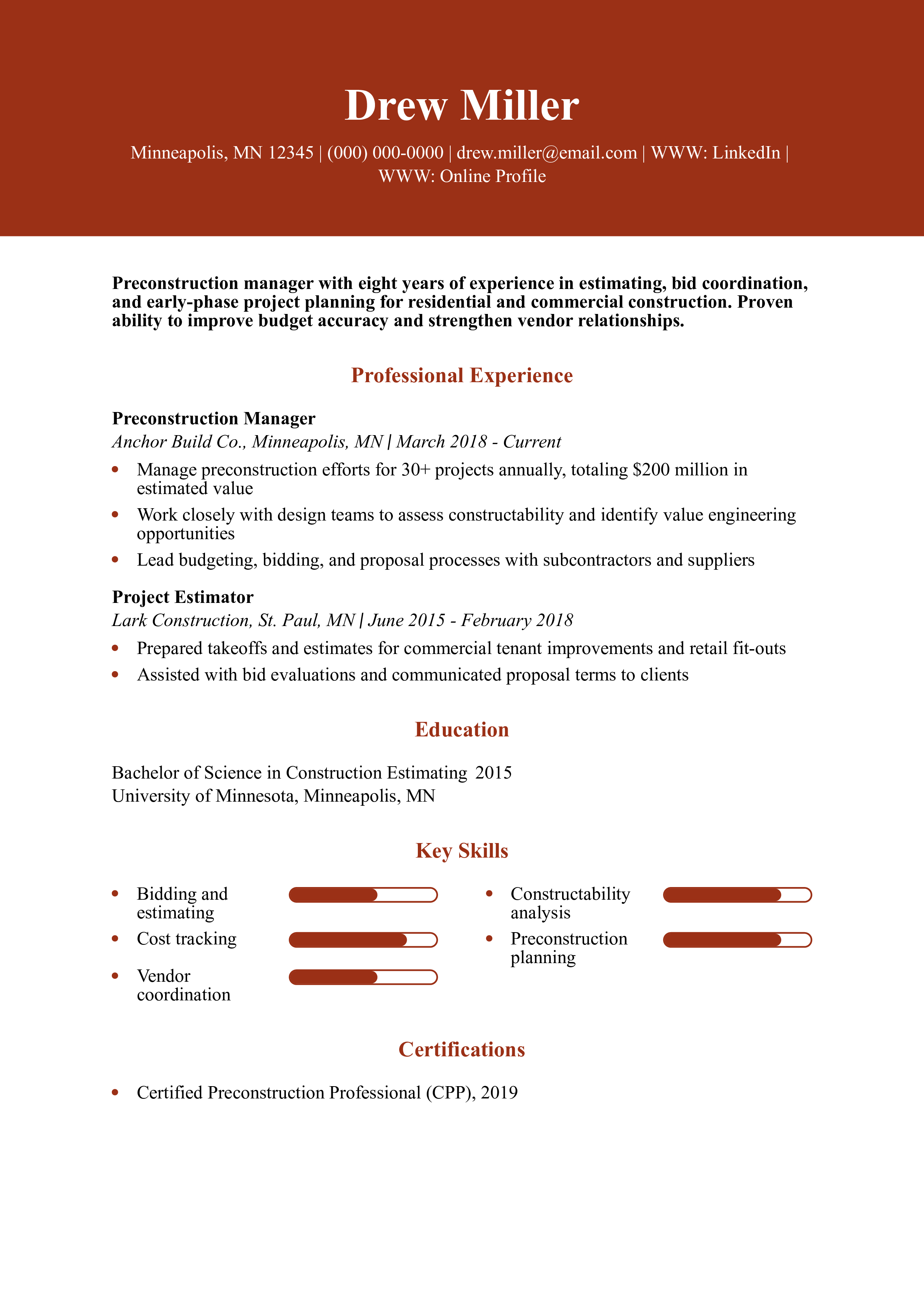 Preconstruction Manager Resume