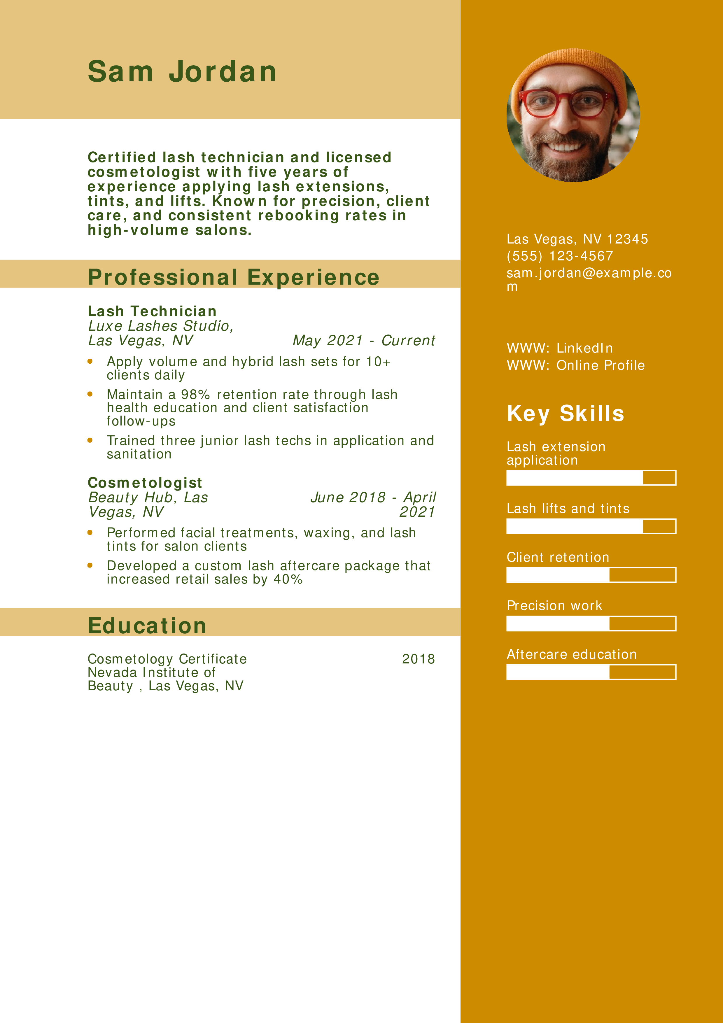 This resume clearly targets a specialized area — lashes — and demonstrates performance through retention and retail growth. For more tips on showcasing certifications and licenses, see how to list certifications on a resume.
