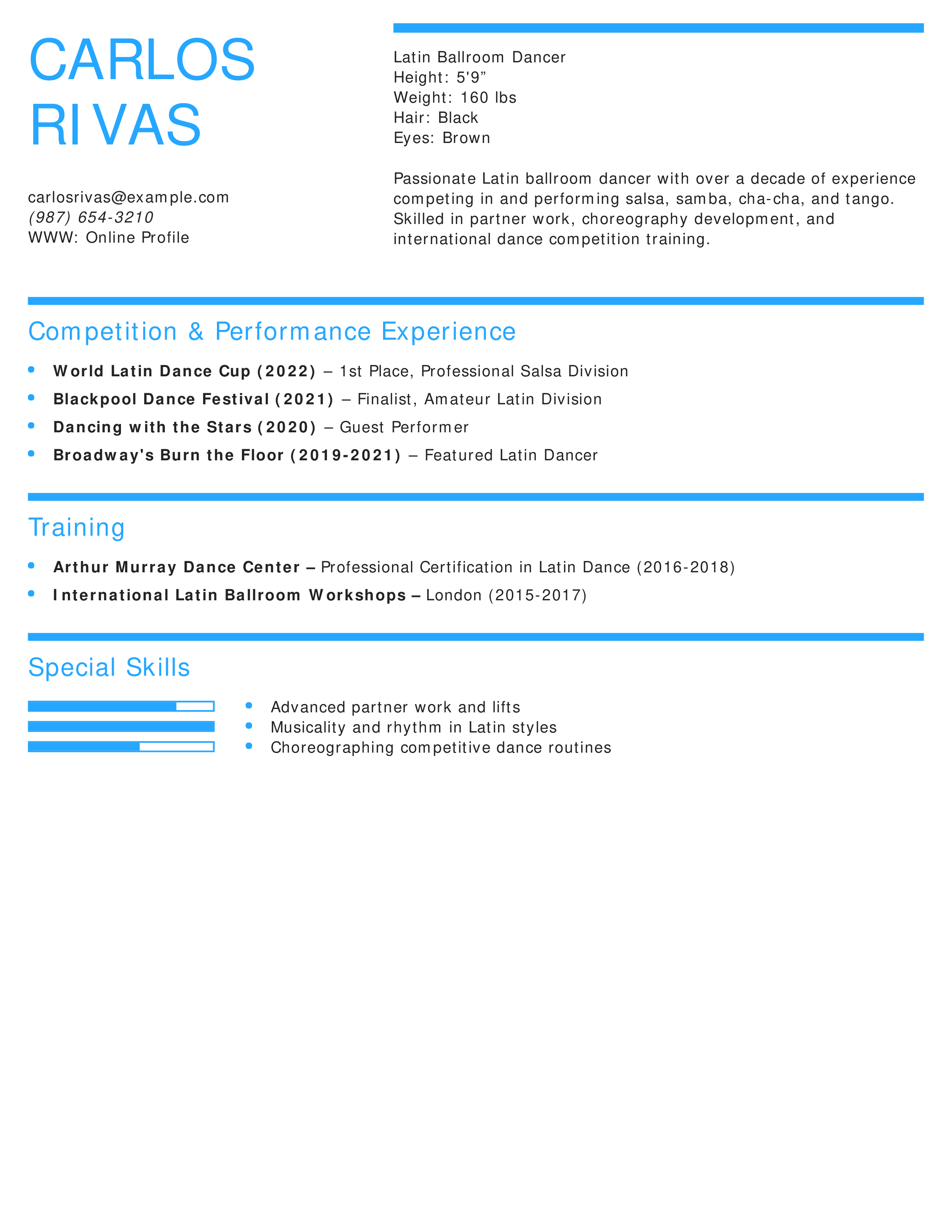 Key Tips: Emphasize competition wins for credibility. Highlight partner dance expertise.
