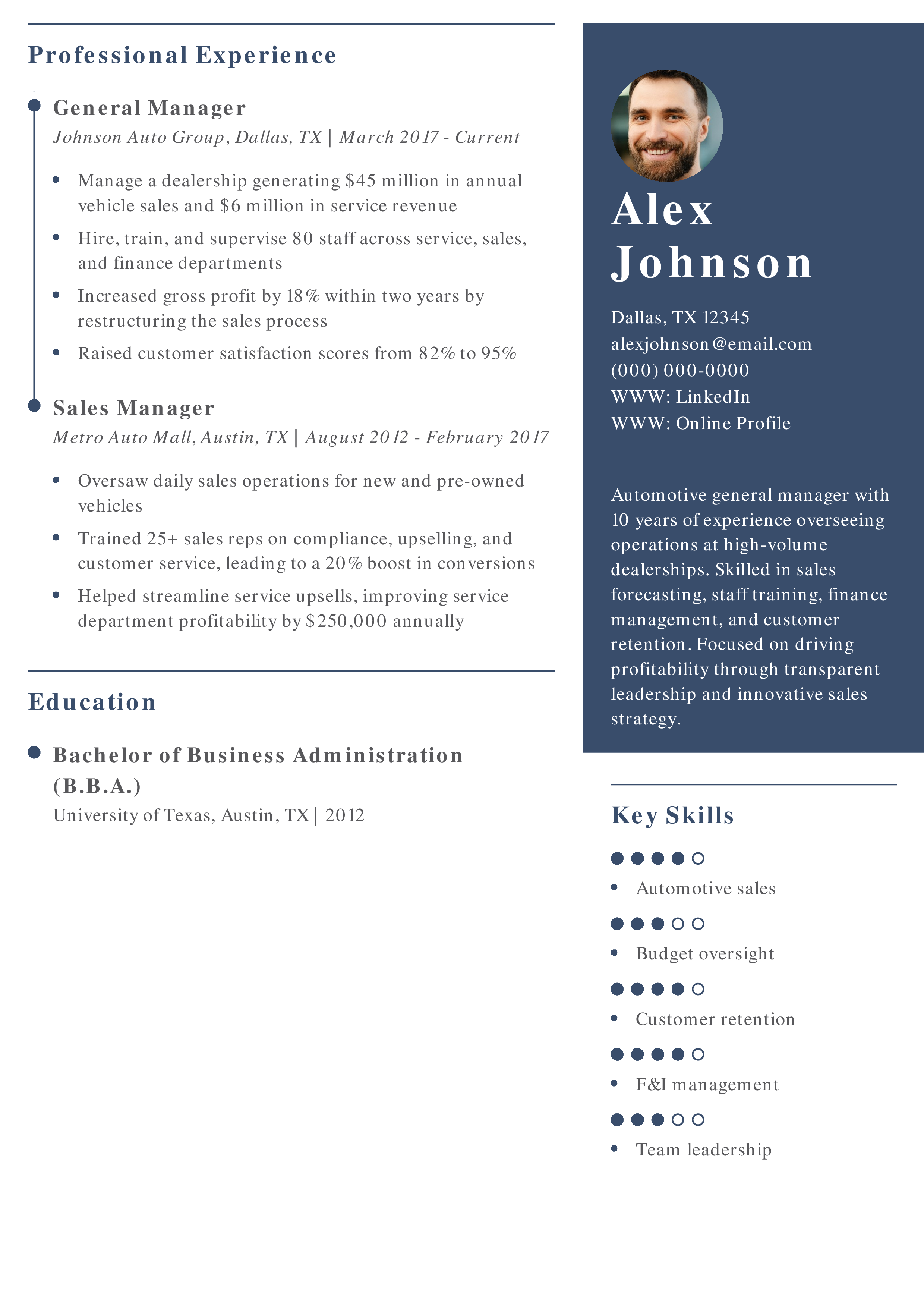 Automotive General Manager Resume