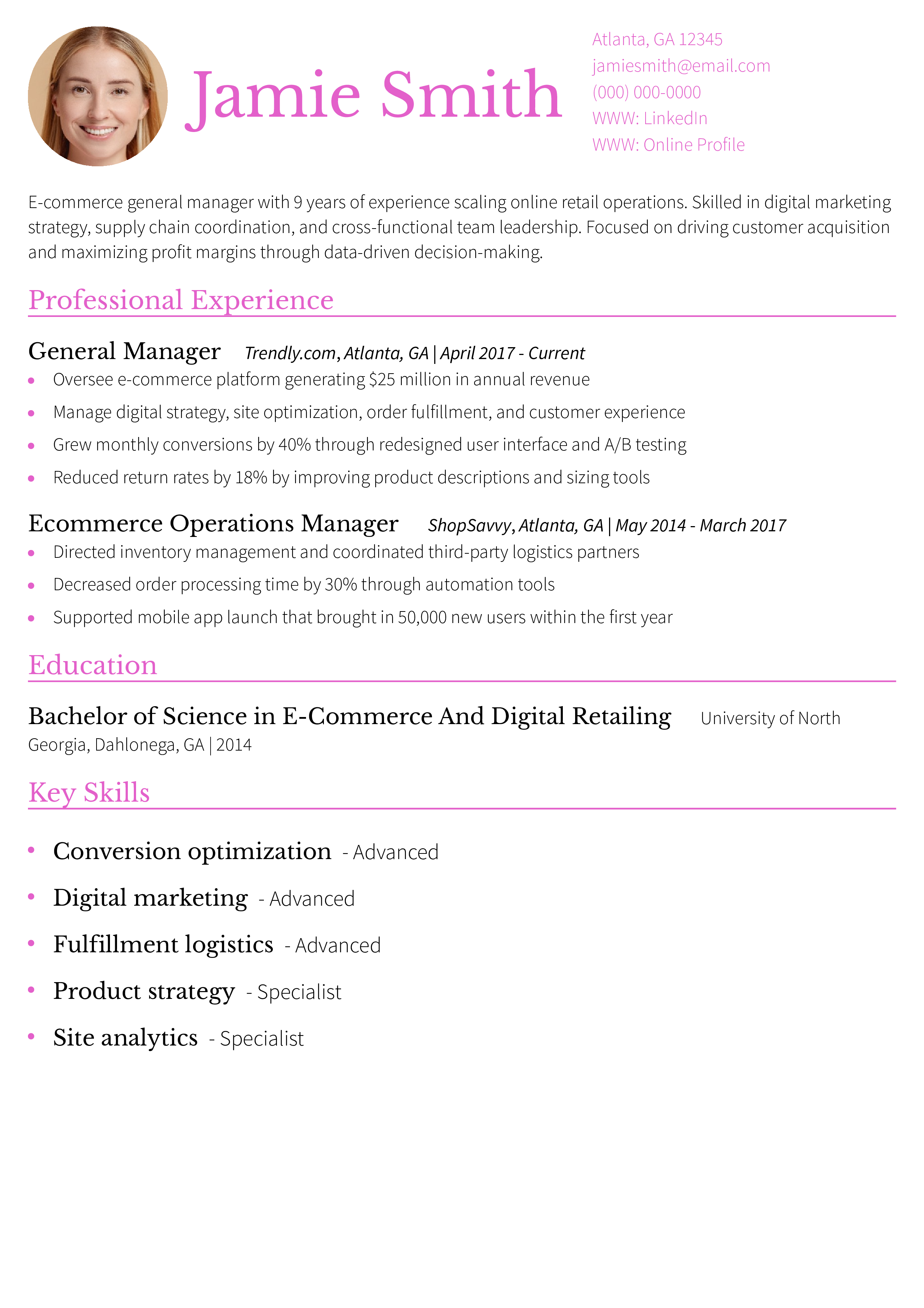 E-commerce General Manager Resume