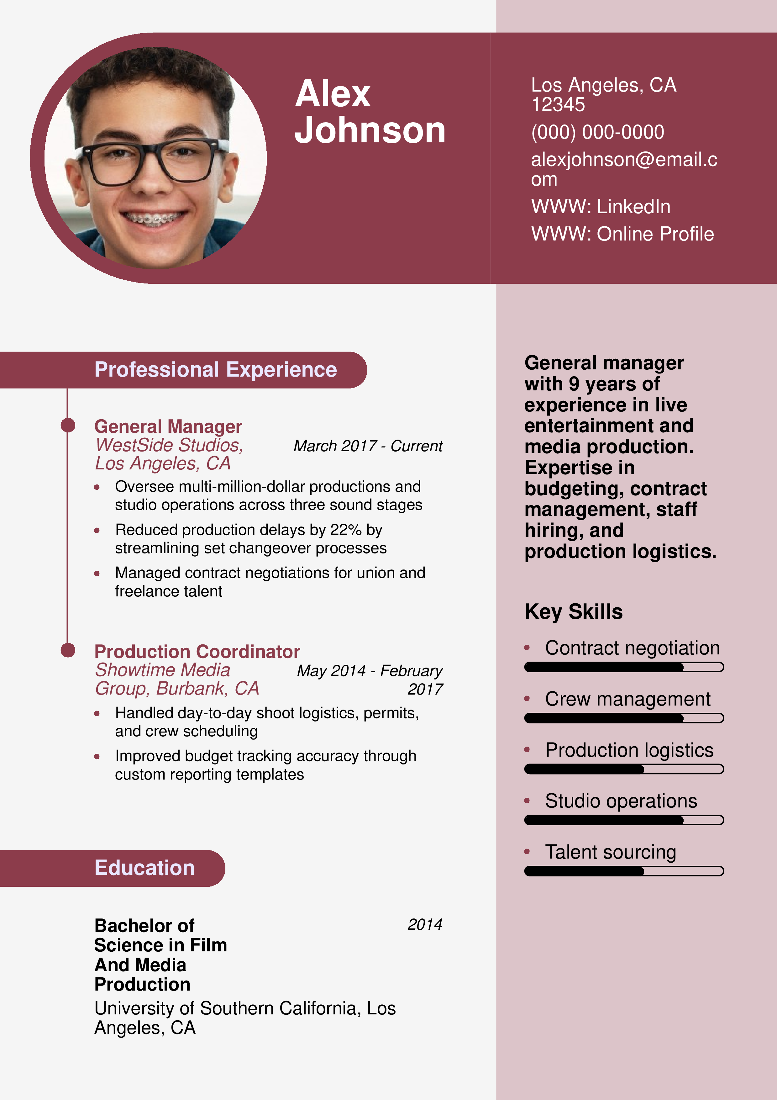 Entertainment Production General Manager Resume