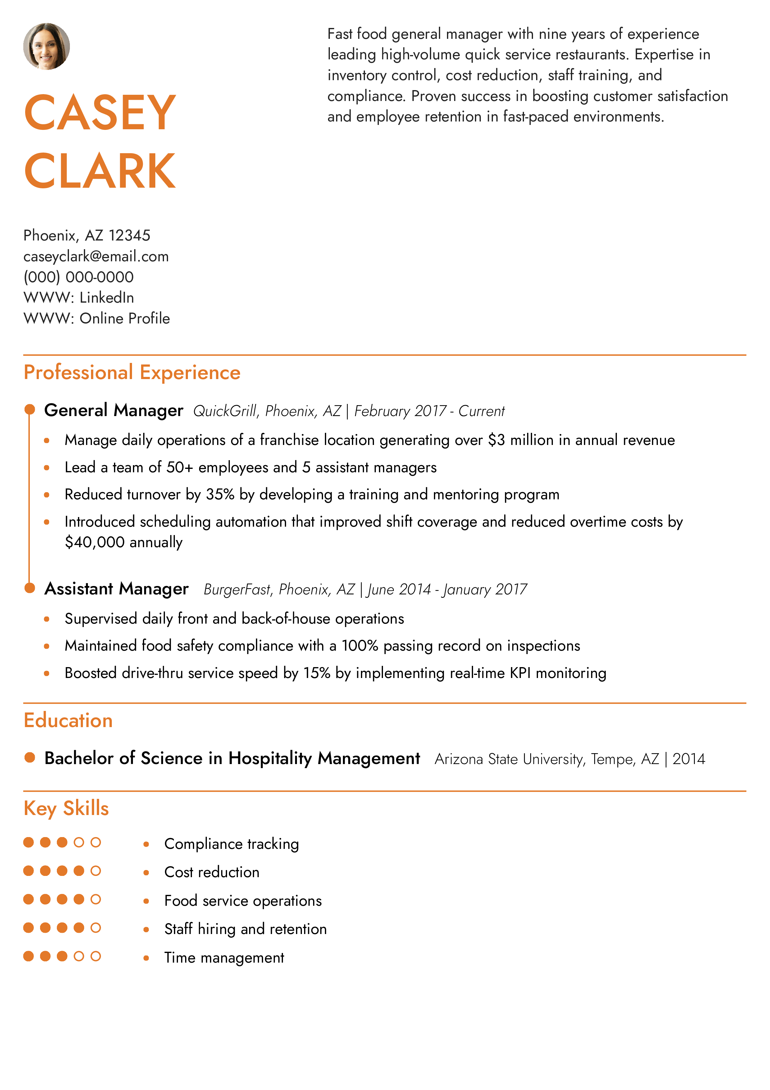 Fast Food General Manager Resume