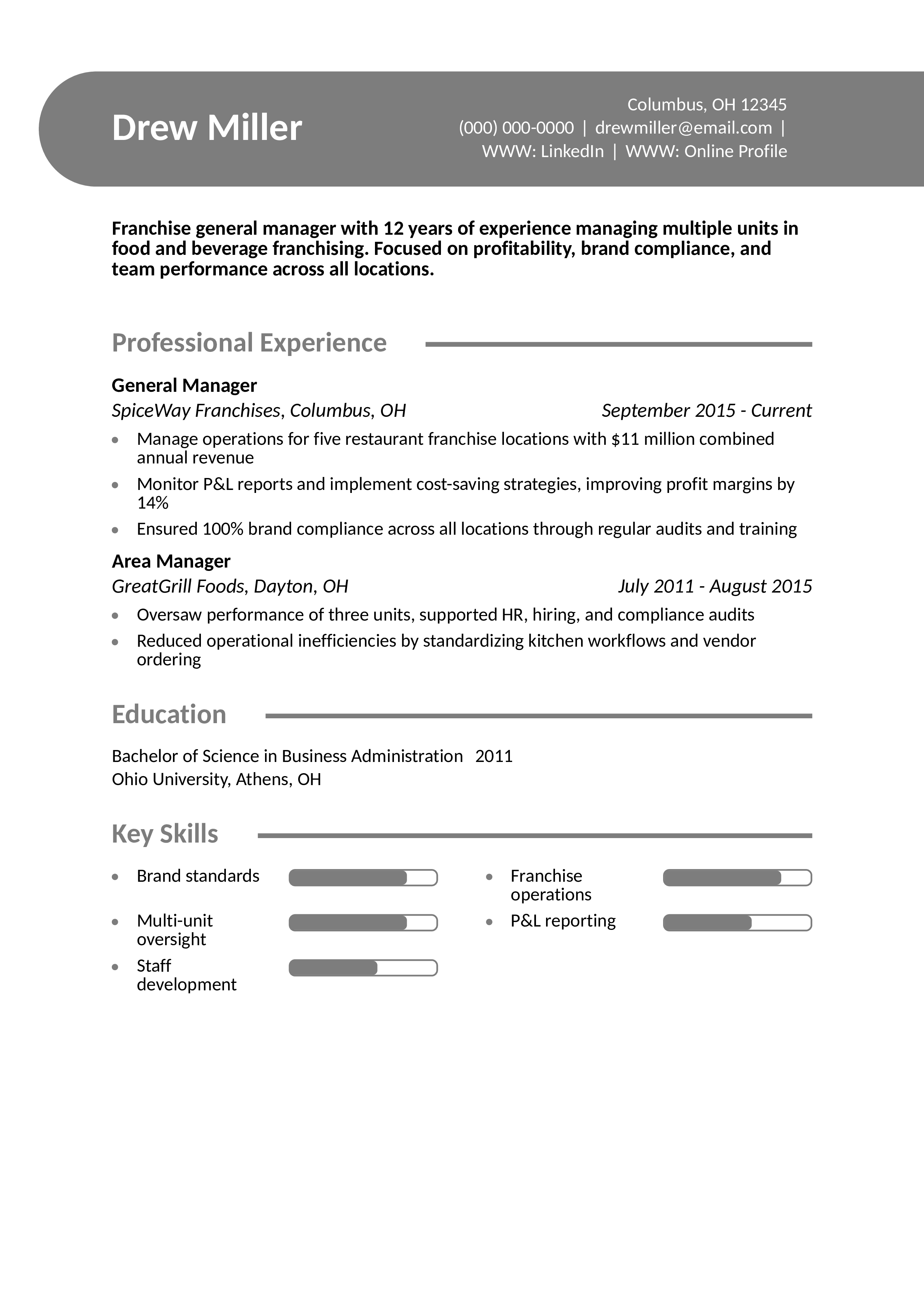 Franchise General Manager Resume
