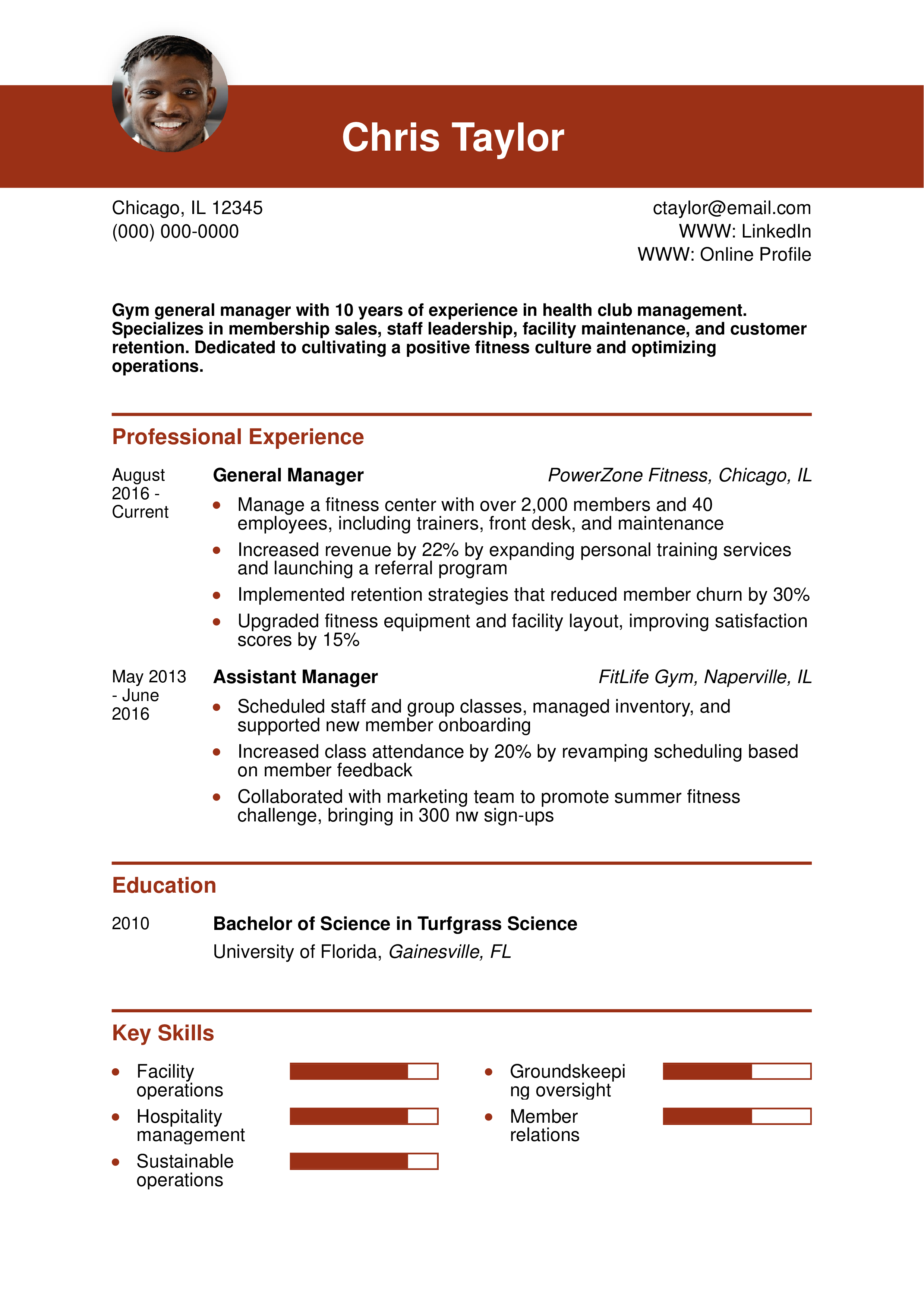 Gym General Manager Resume