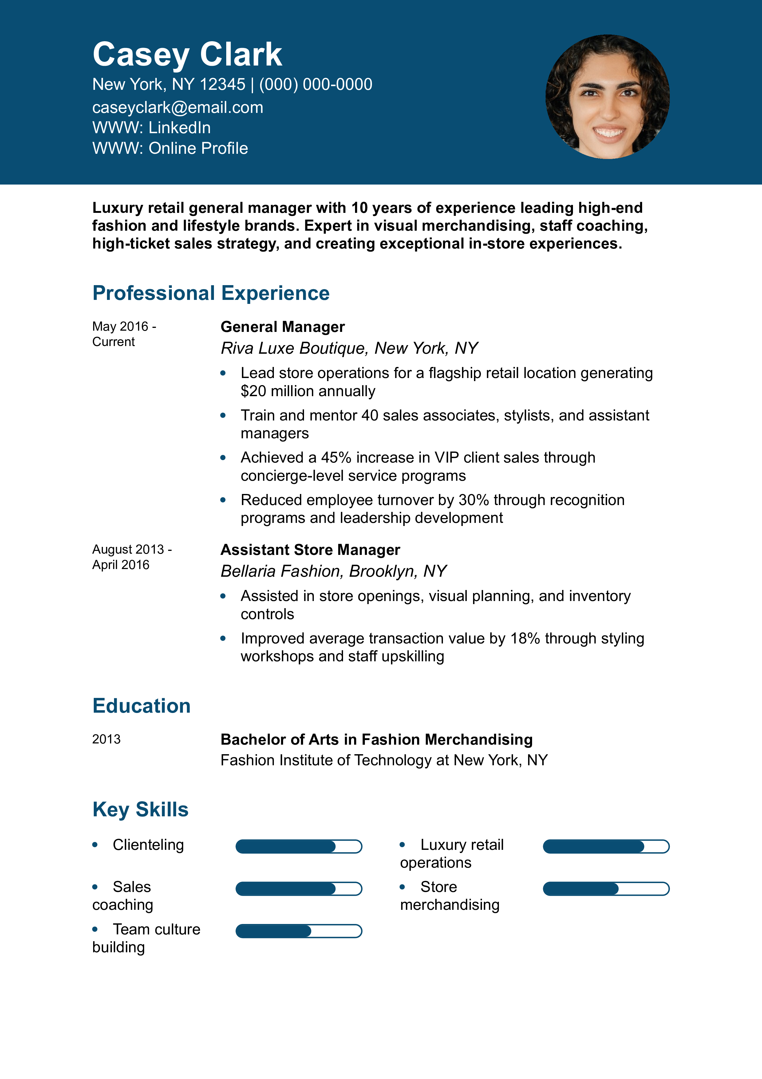 Luxury Retail General Manager Resume