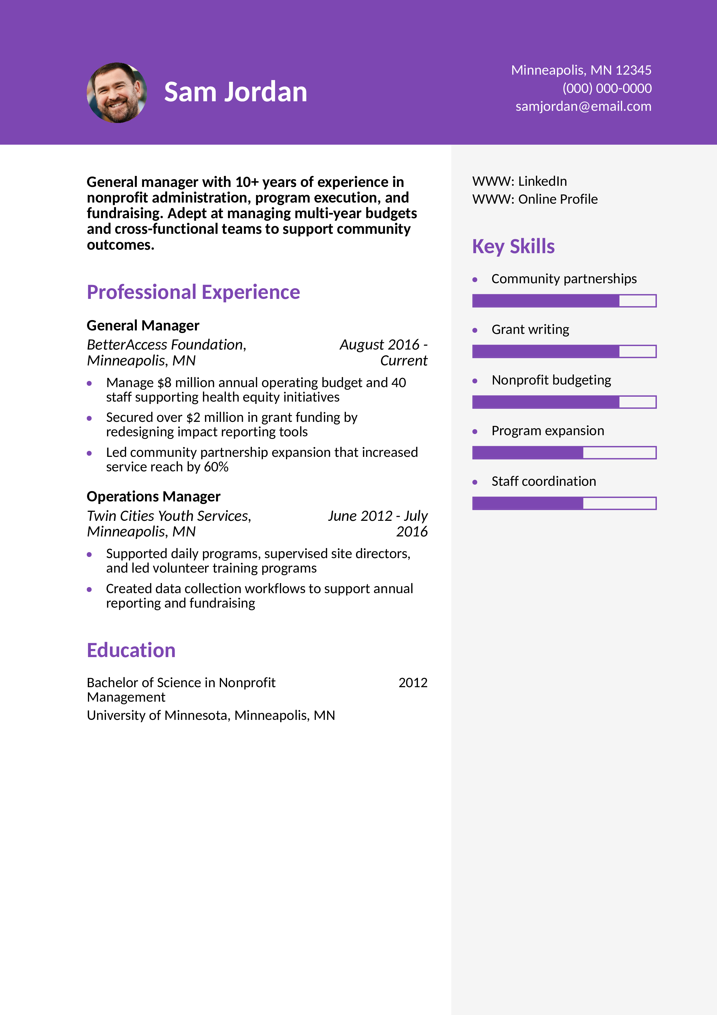 Nonprofit General Manager Resume