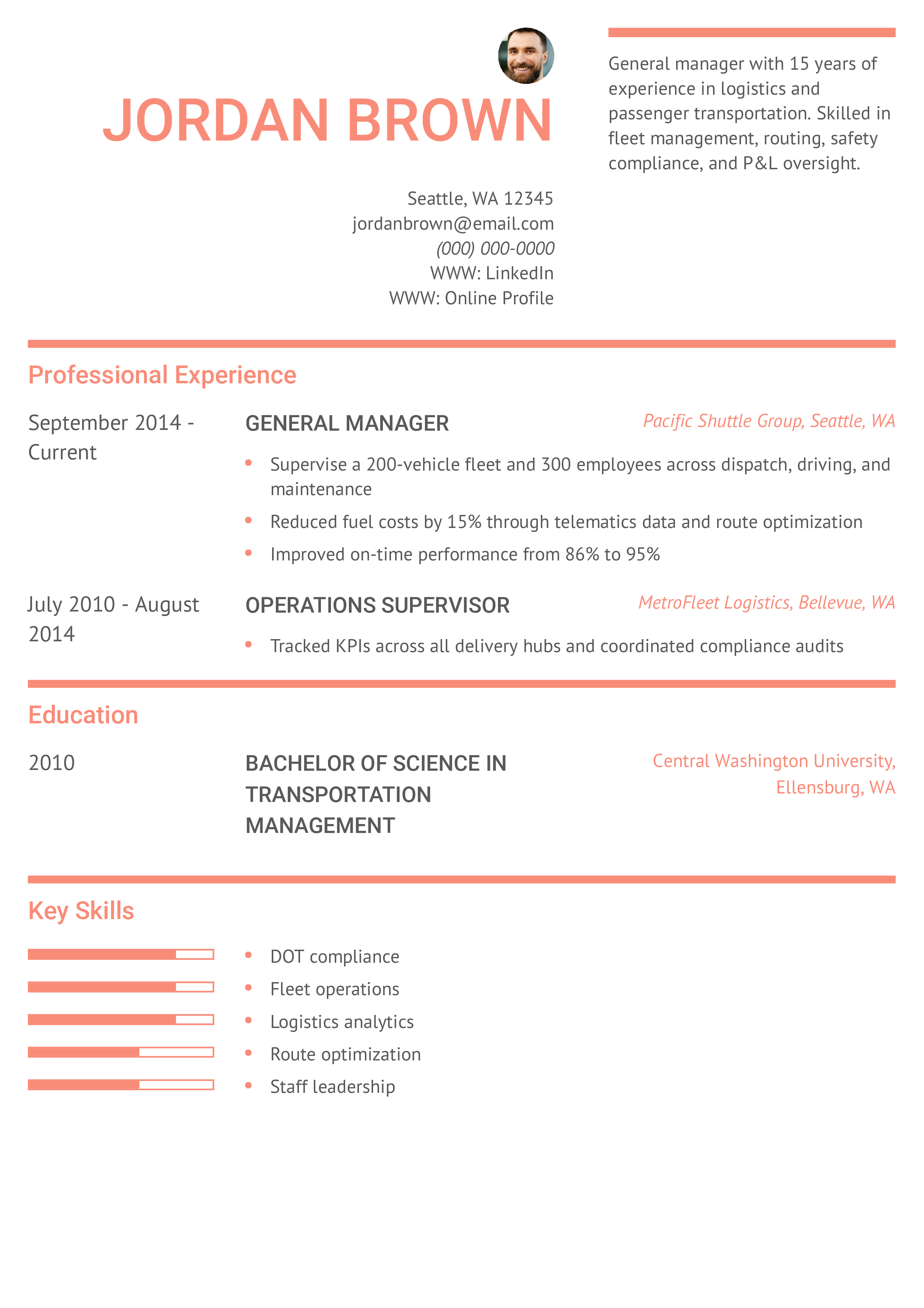 Transportation General Manager Resume