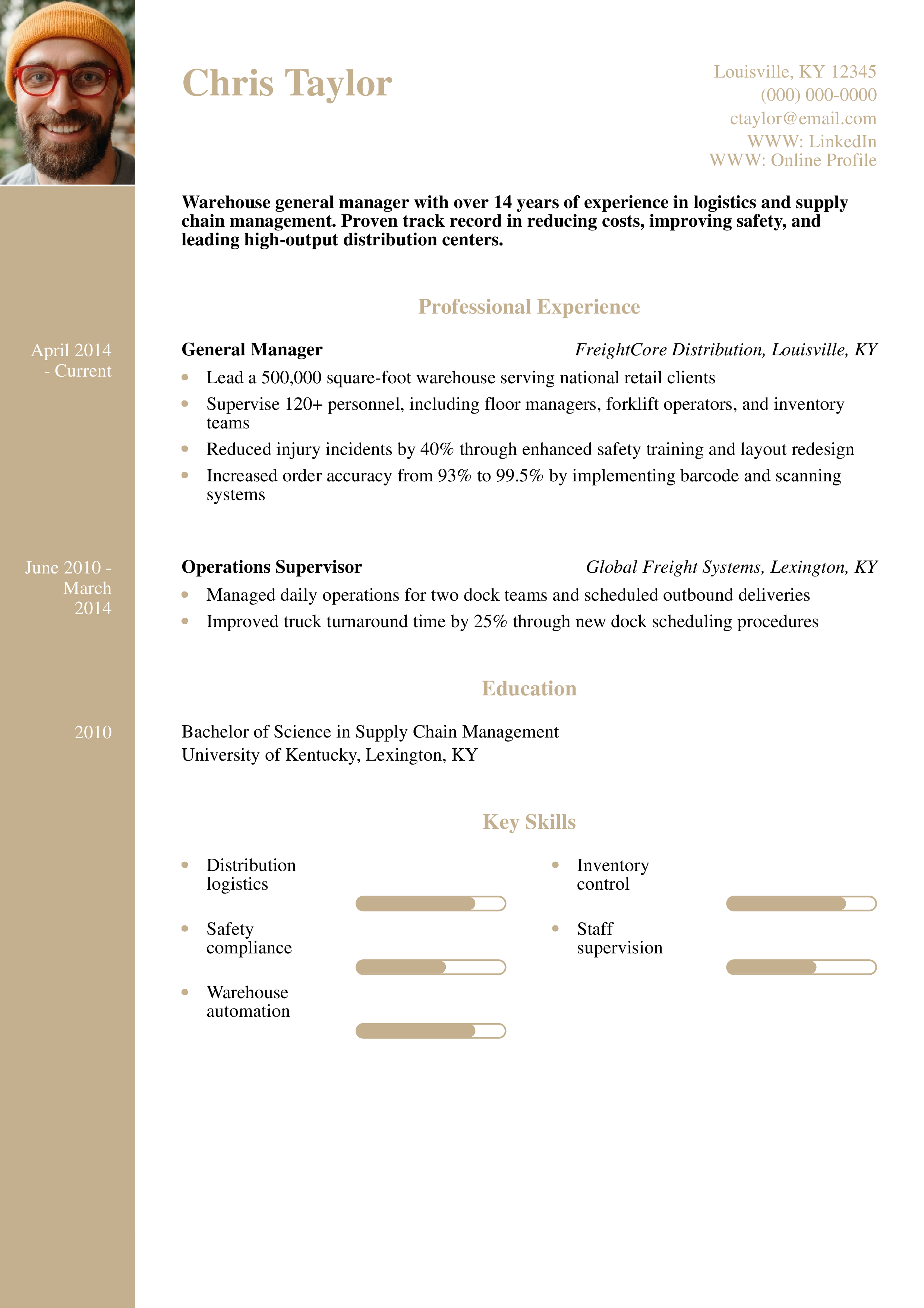 This resume effectively demonstrates operational improvements and safety outcomes. Read how to structure your logistics resume.