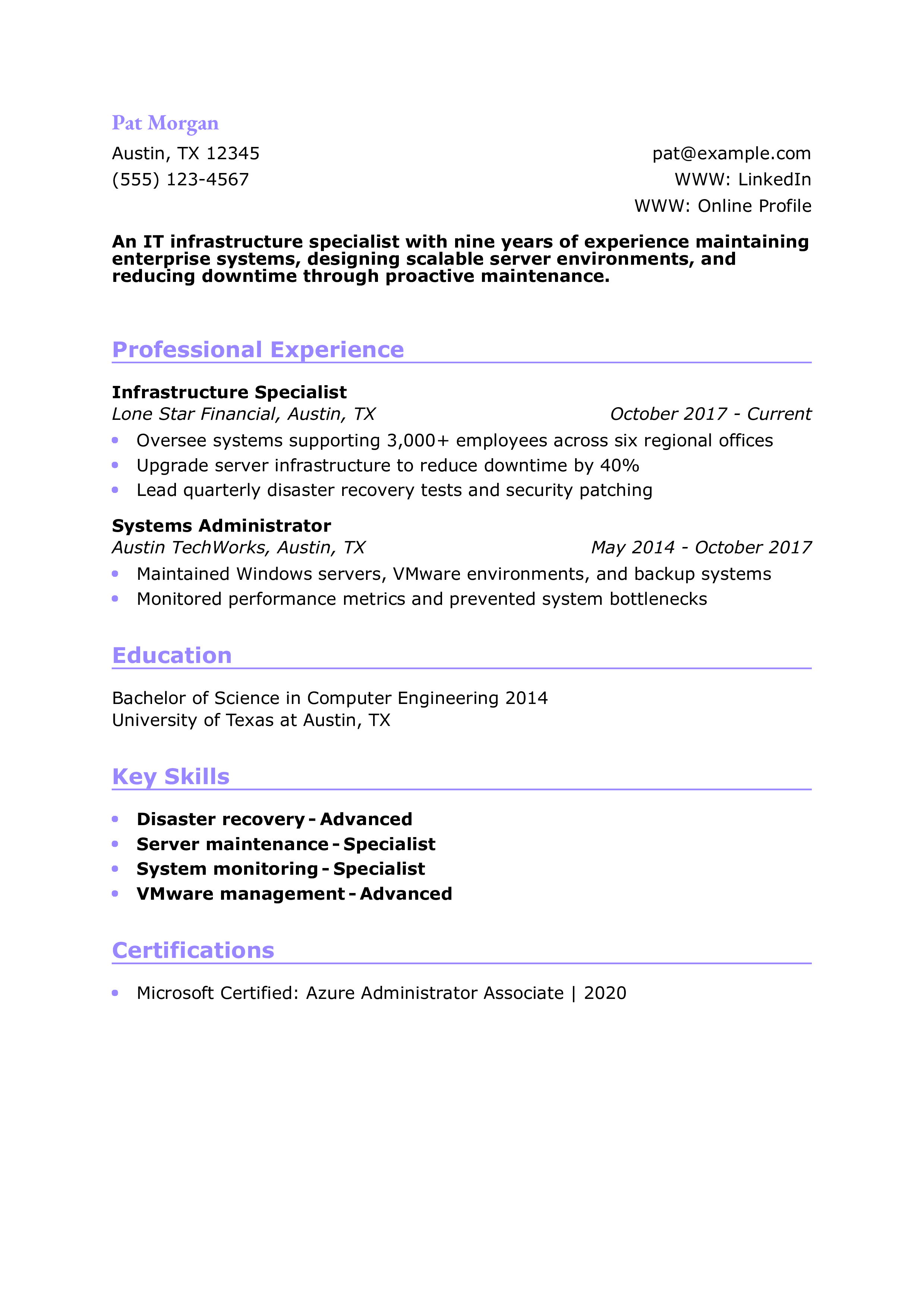 Why this IT Infrastructure Specialist Resume Example is Strong: