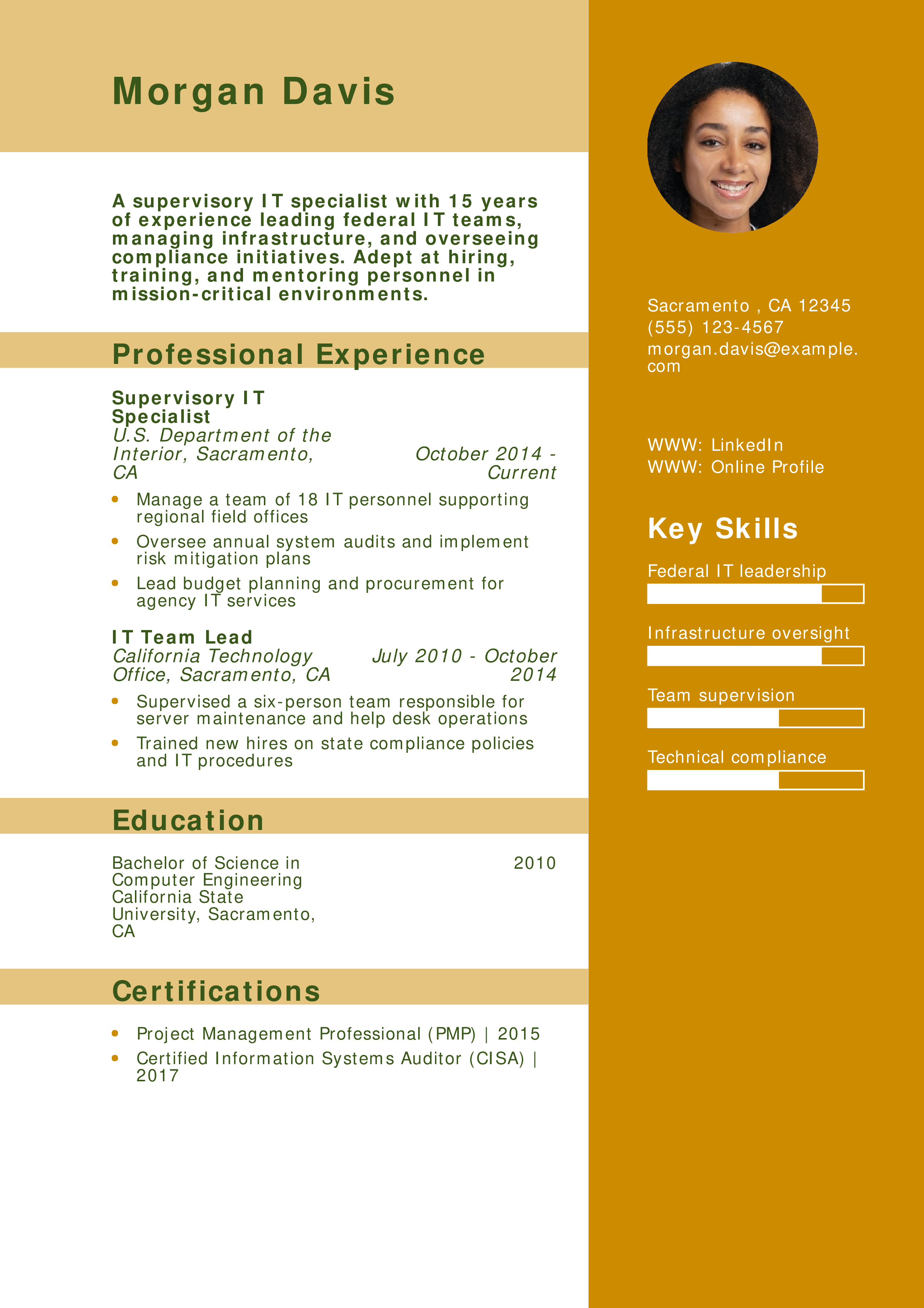 Why this Supervisory IT Specialist Resume Example is Strong: