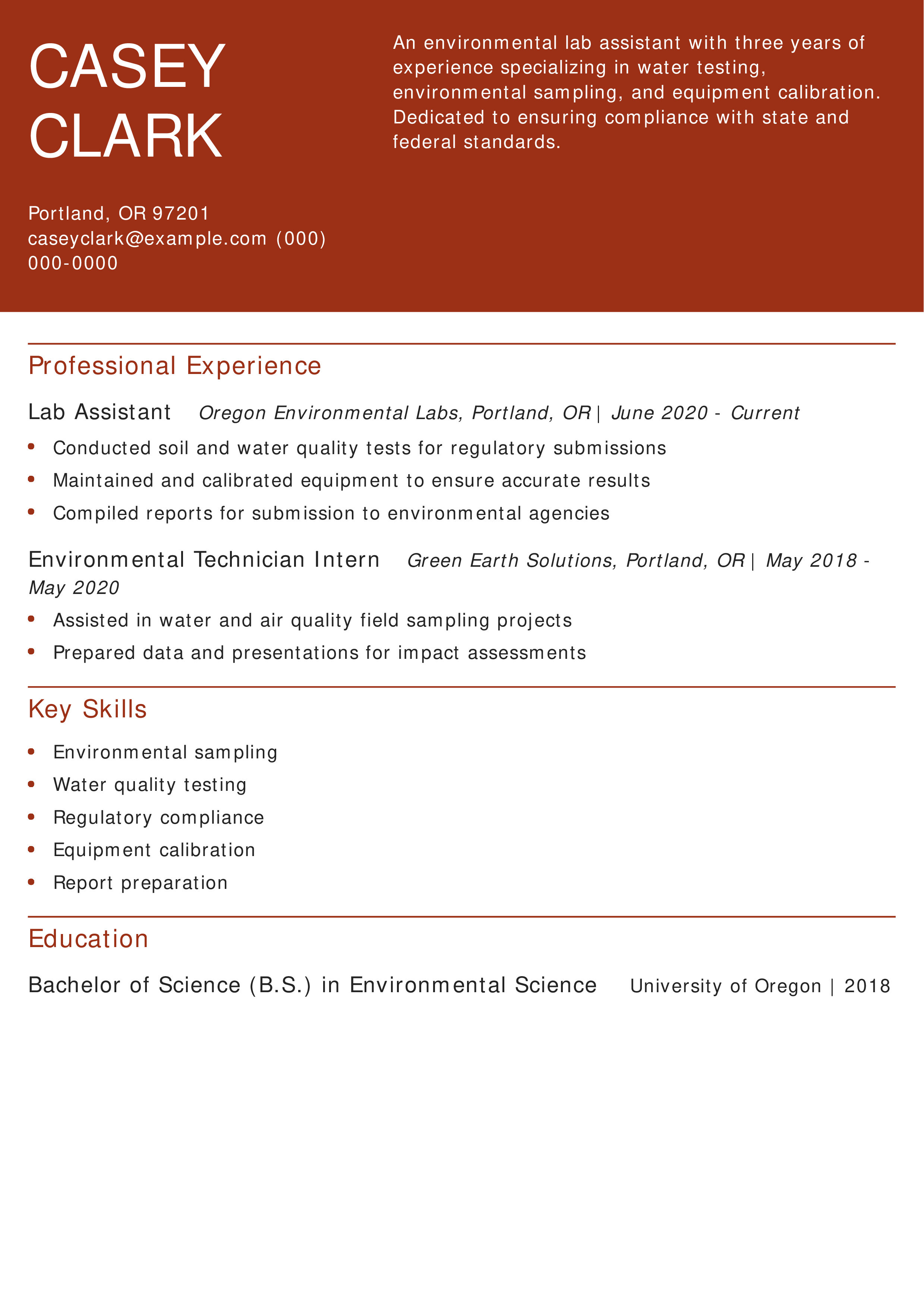 This resume is strong because it balances lab testing with fieldwork and compliance documentation. It shows real-world impact. For more on content to include, see what to put on a resume.