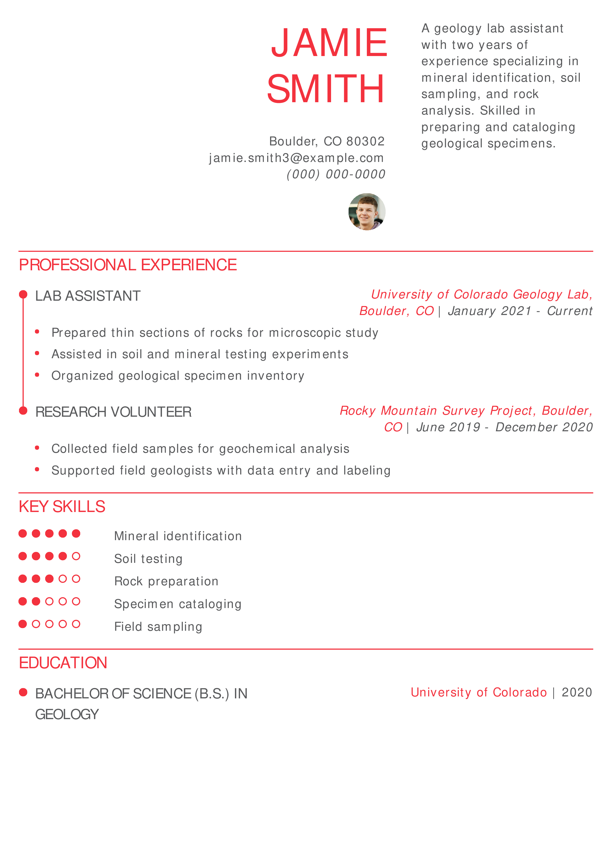 This resume is strong because it highlights both lab and field geology experience. For advice on including research, see how to list publications on a resume or CV.