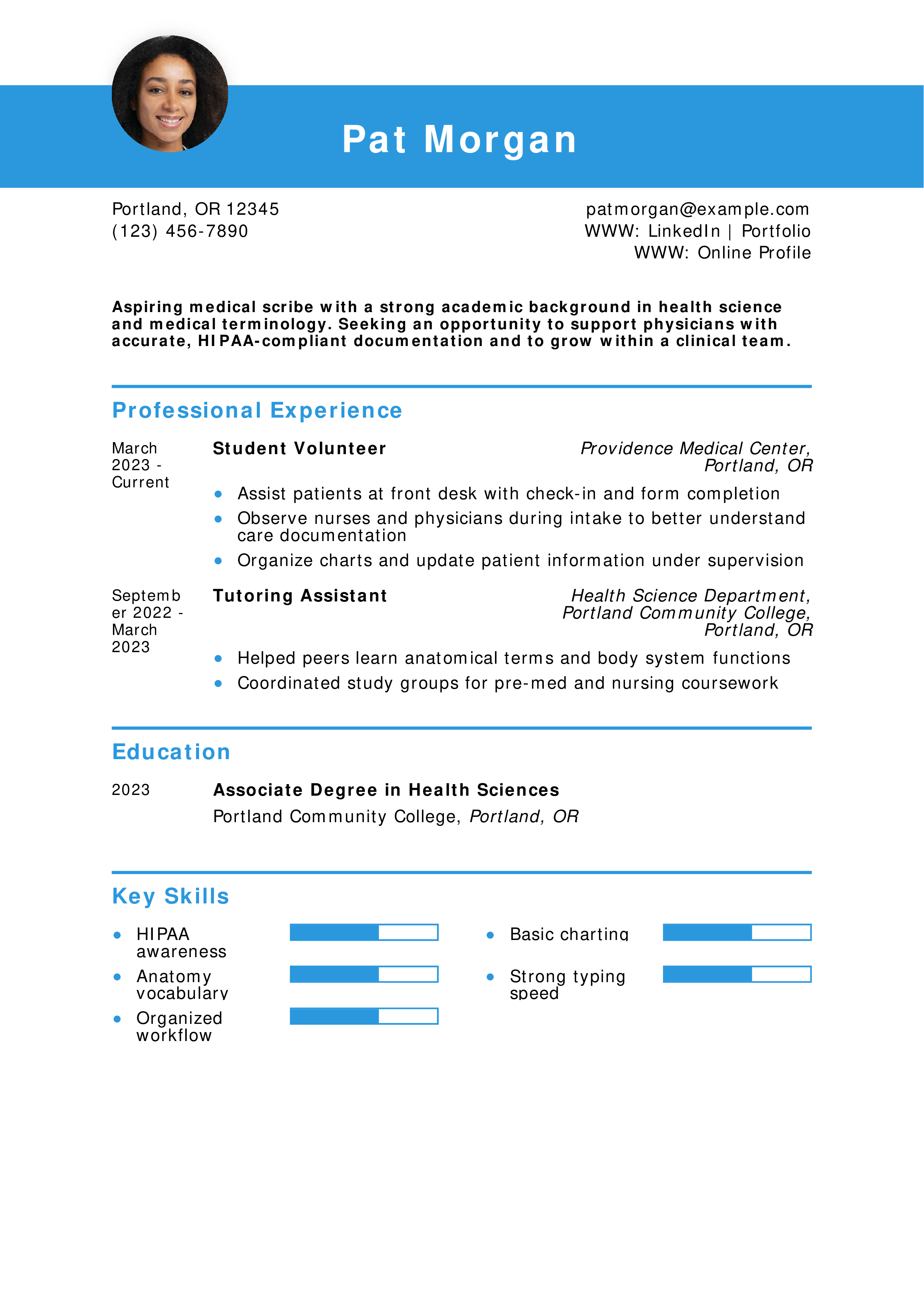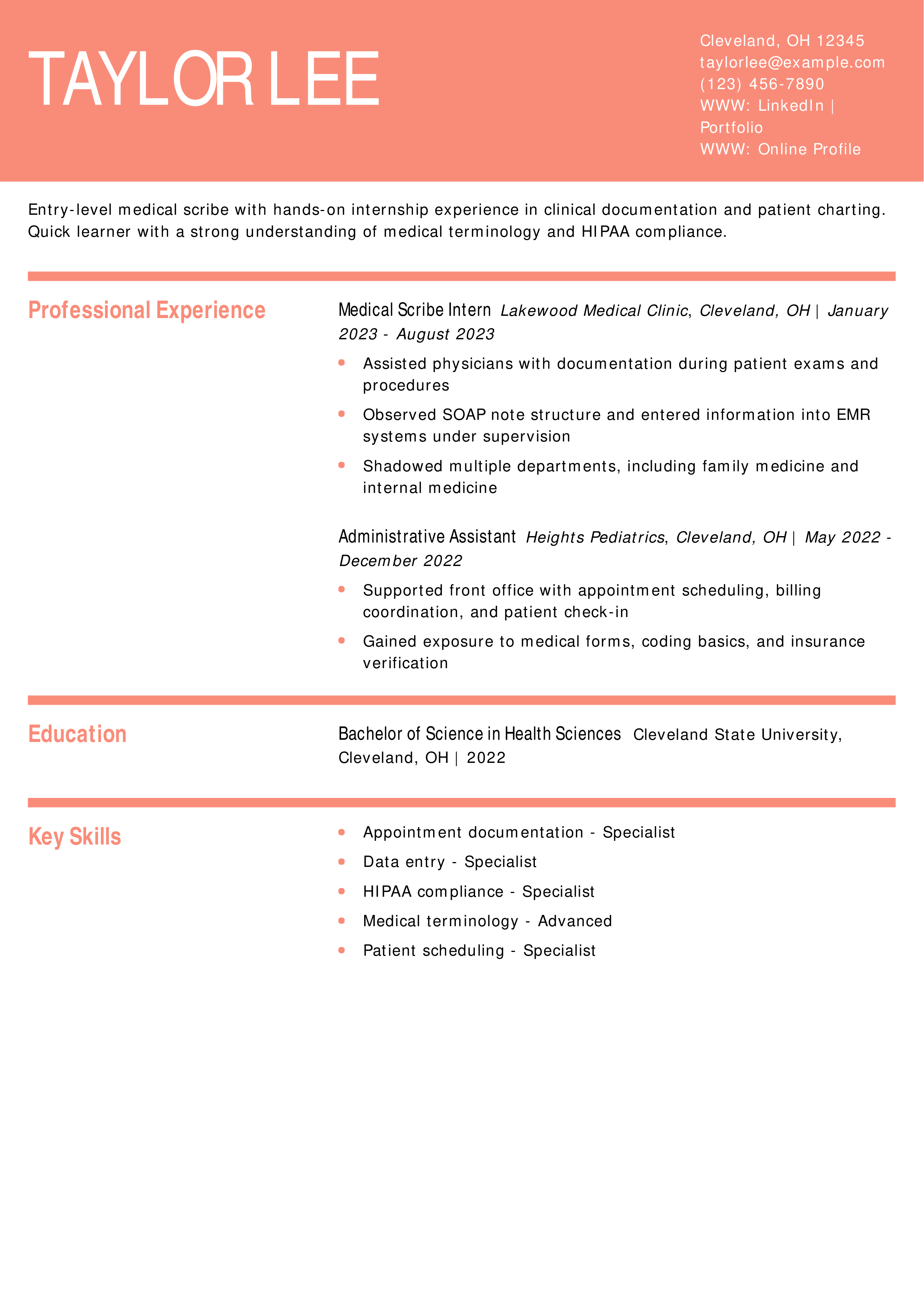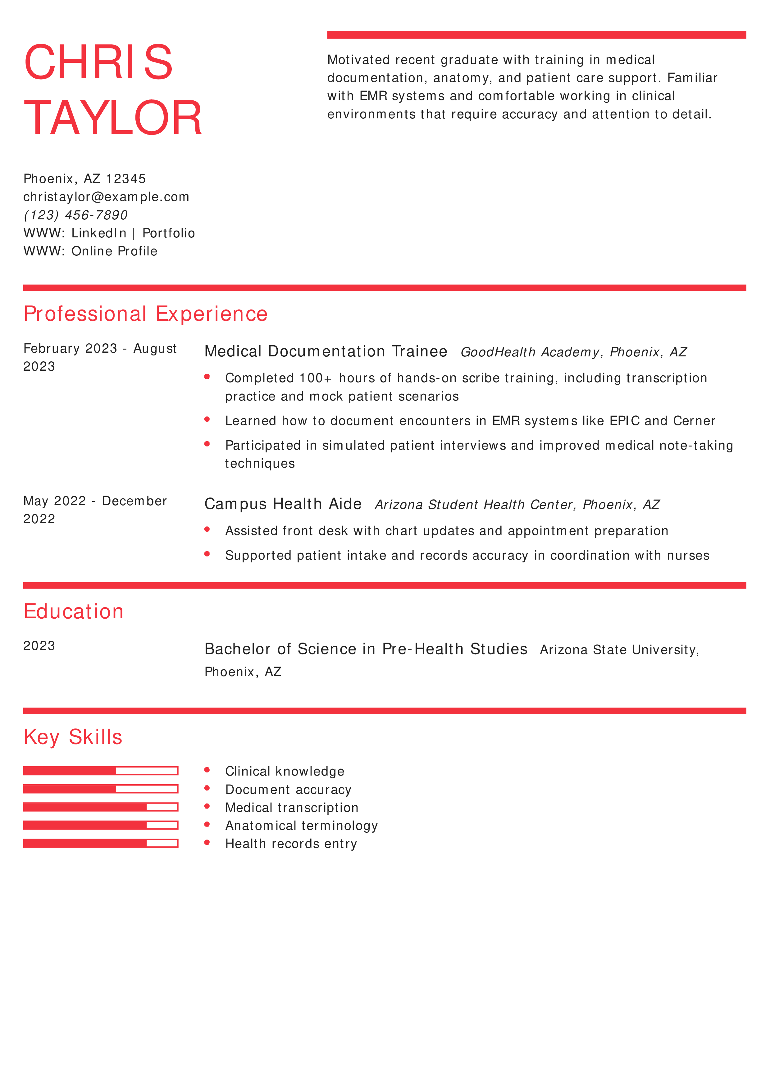 Entry-Level Medical Scribe Resume