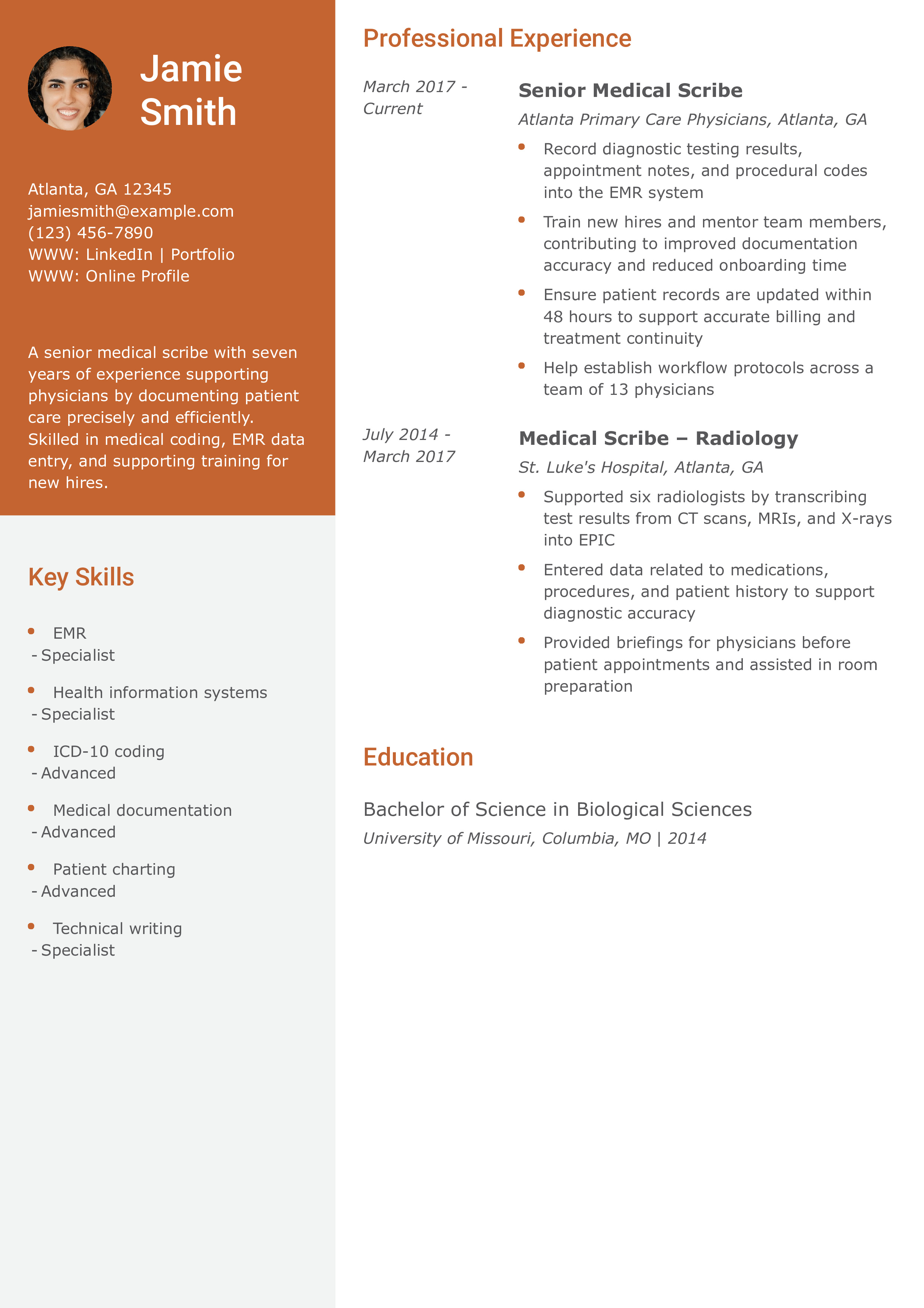 Senior Medical Scribe Resume