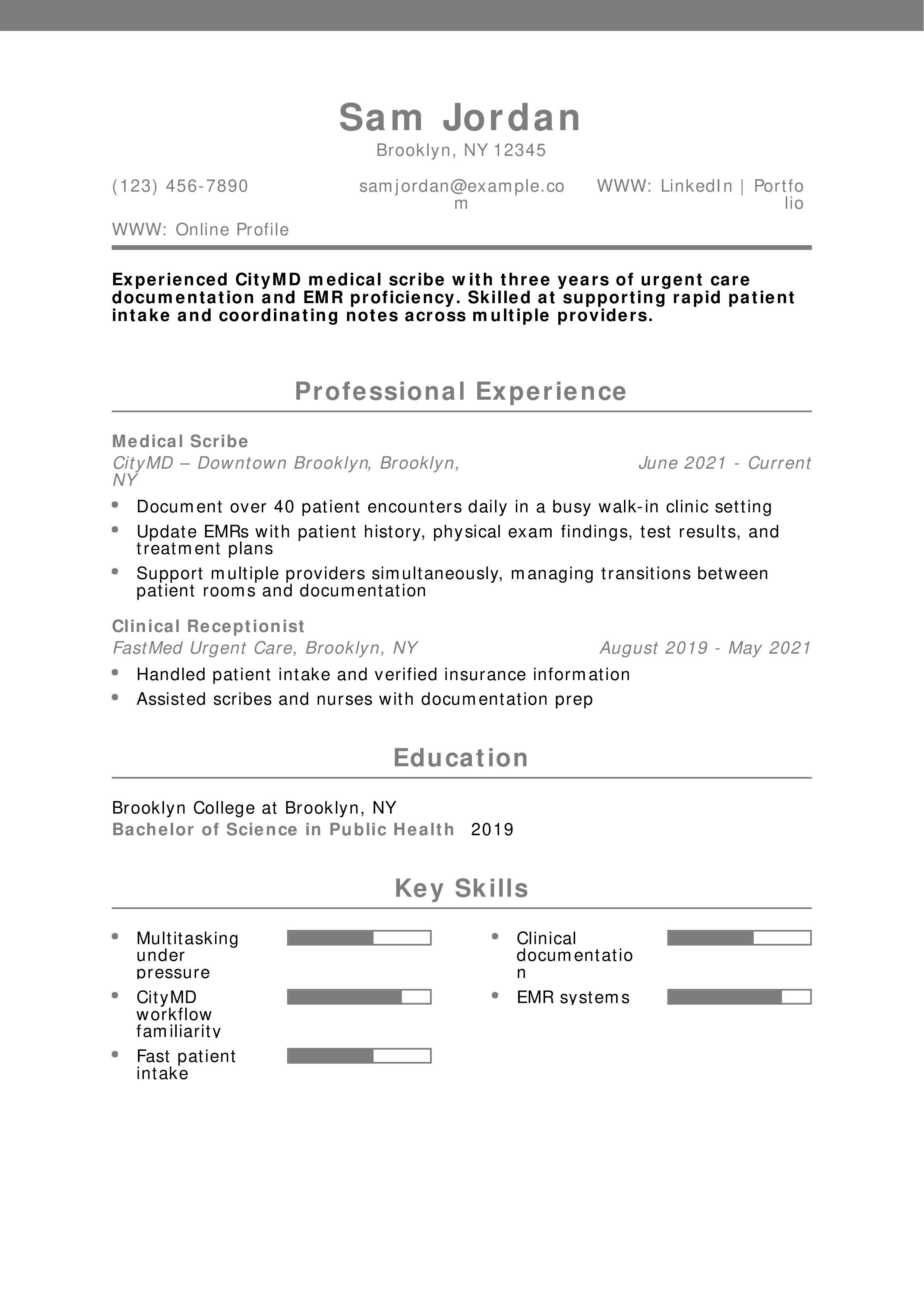 CityMD Medical Scribe Resume