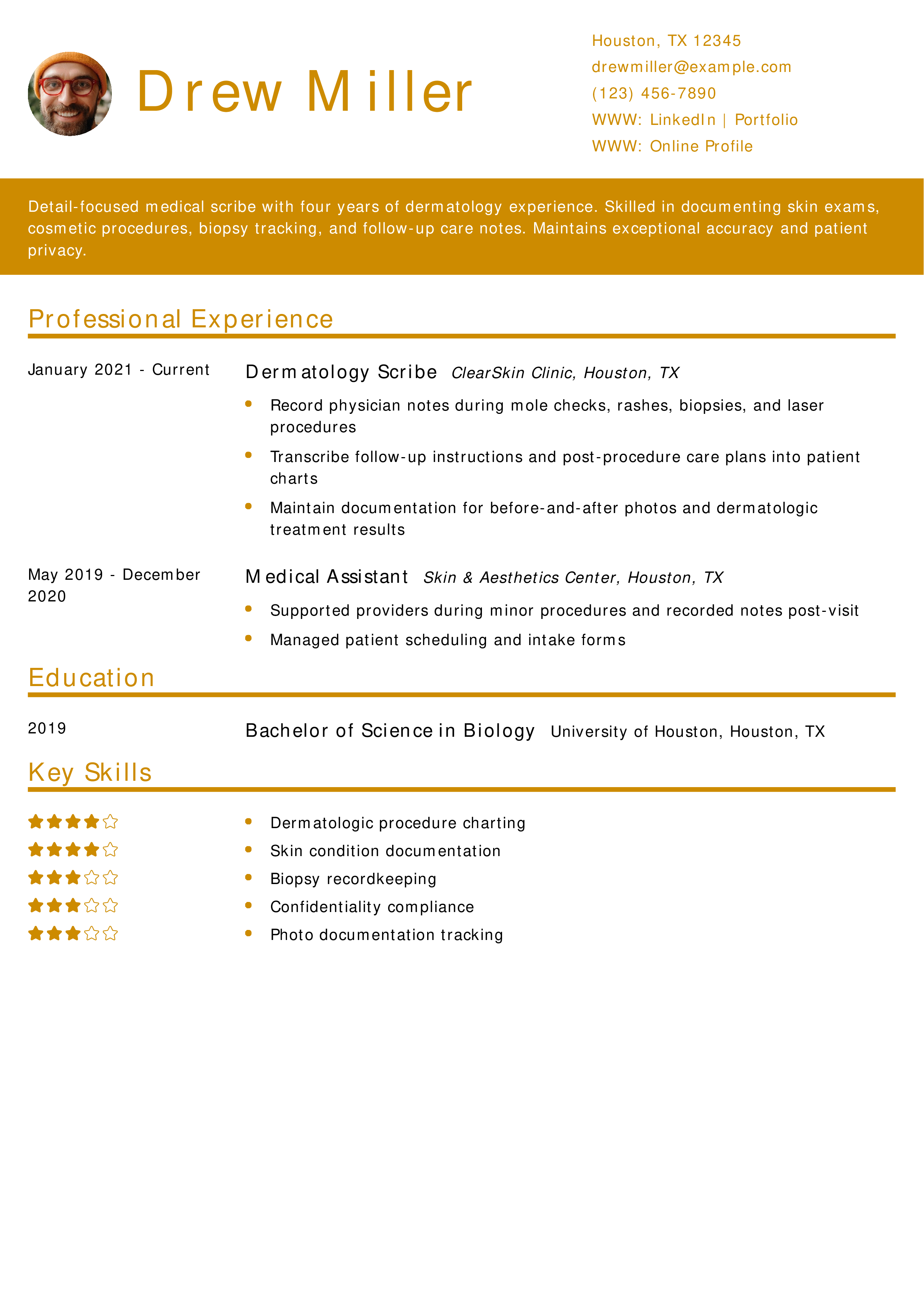 Dermatology Medical Scribe Resume