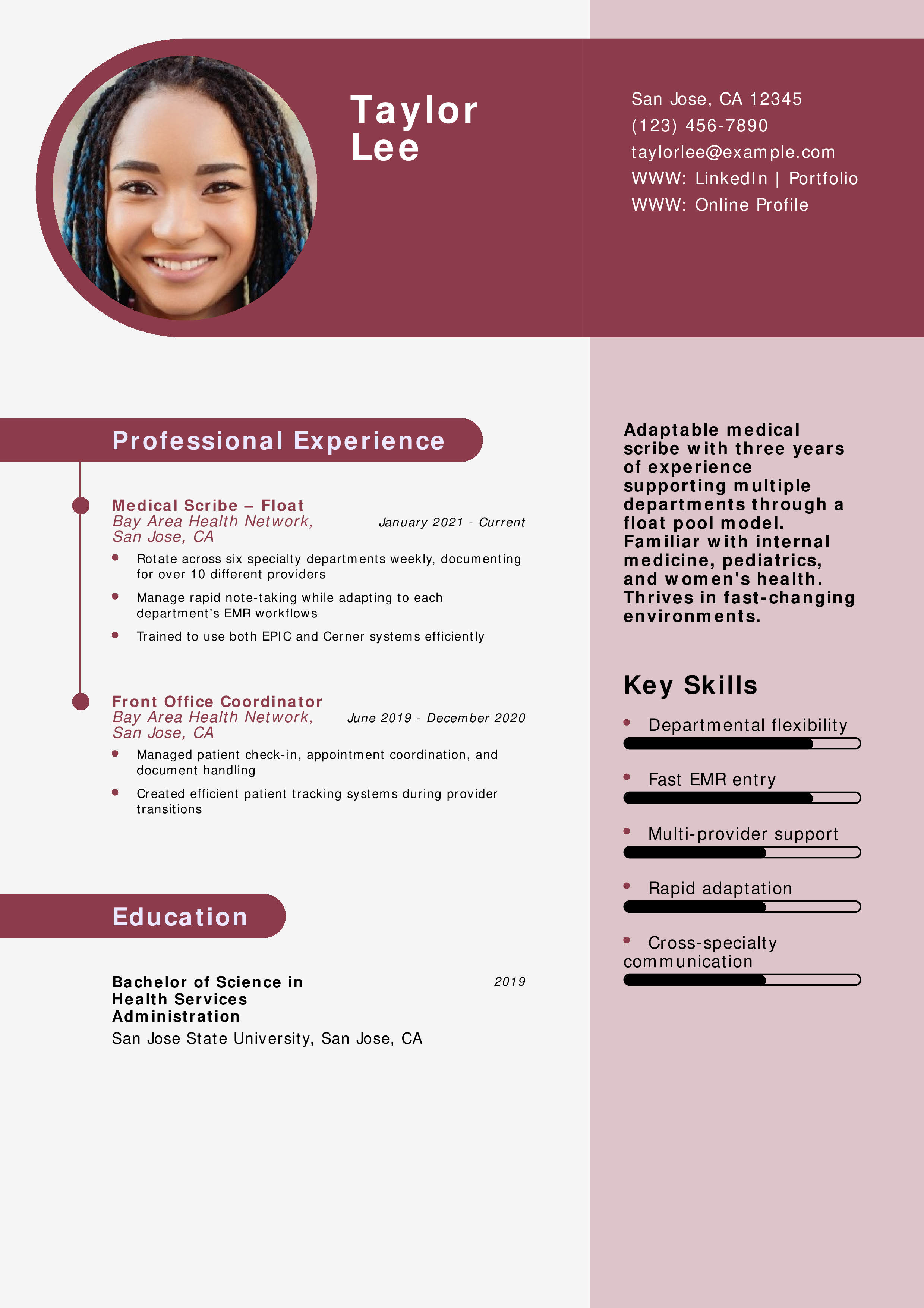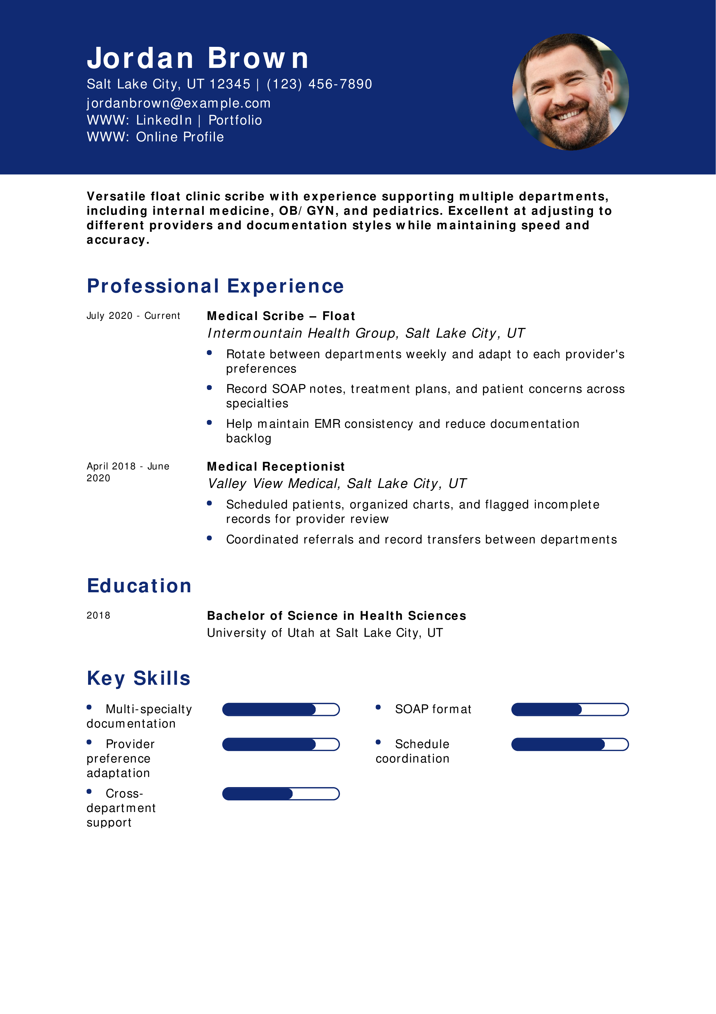 Float Pool Medical Scribe Resume