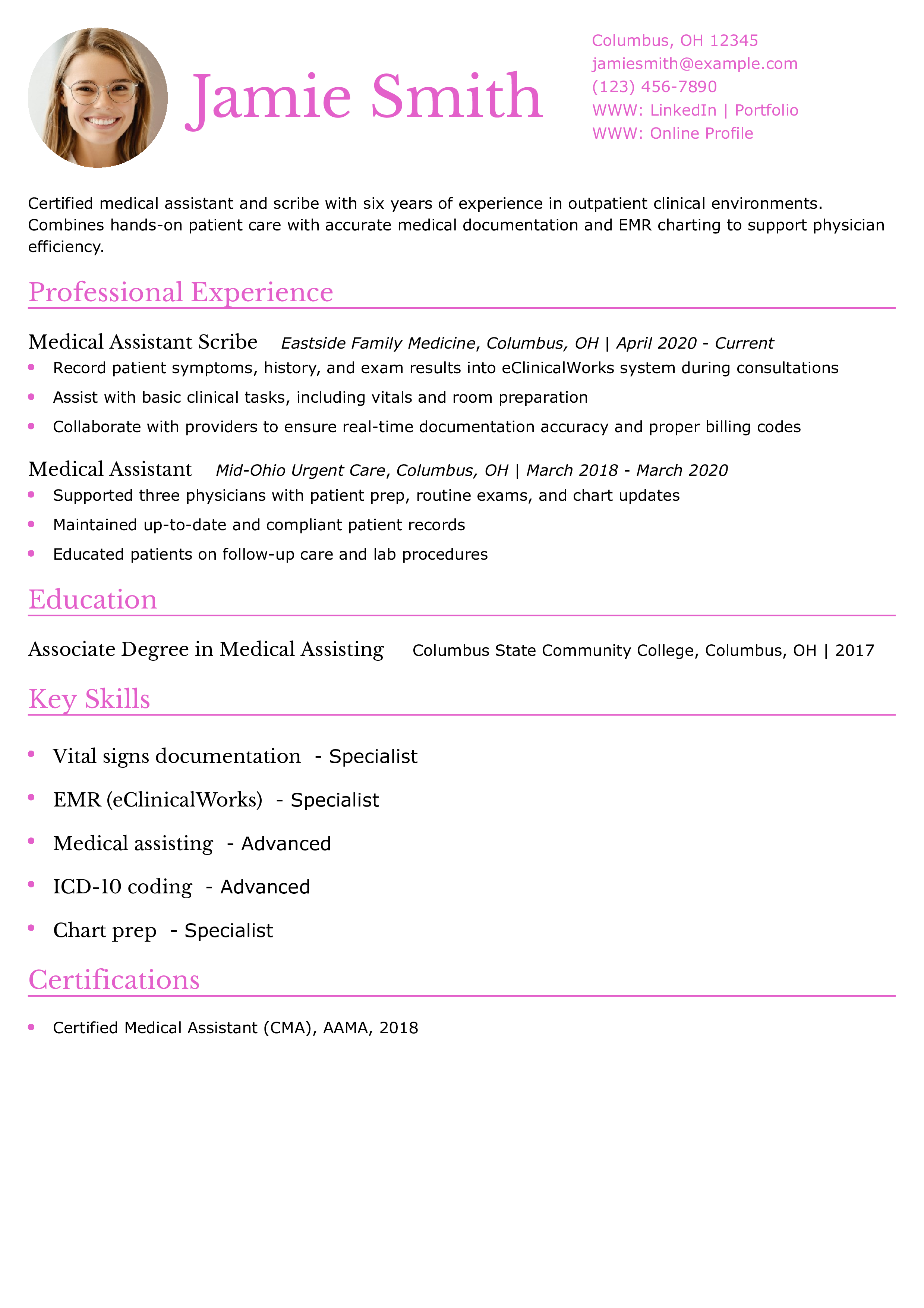 Specialty Clinic Medical Scribe Resume