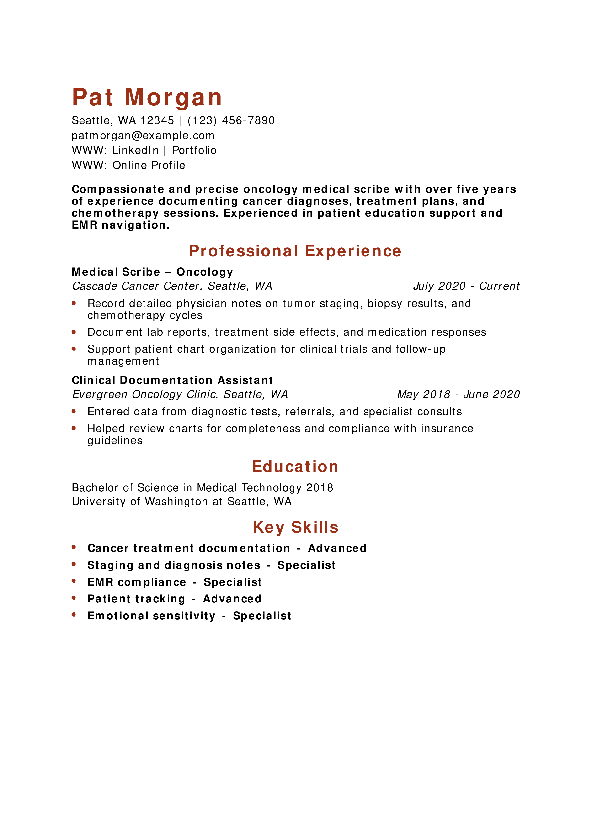 Oncology Medical Scribe Resume