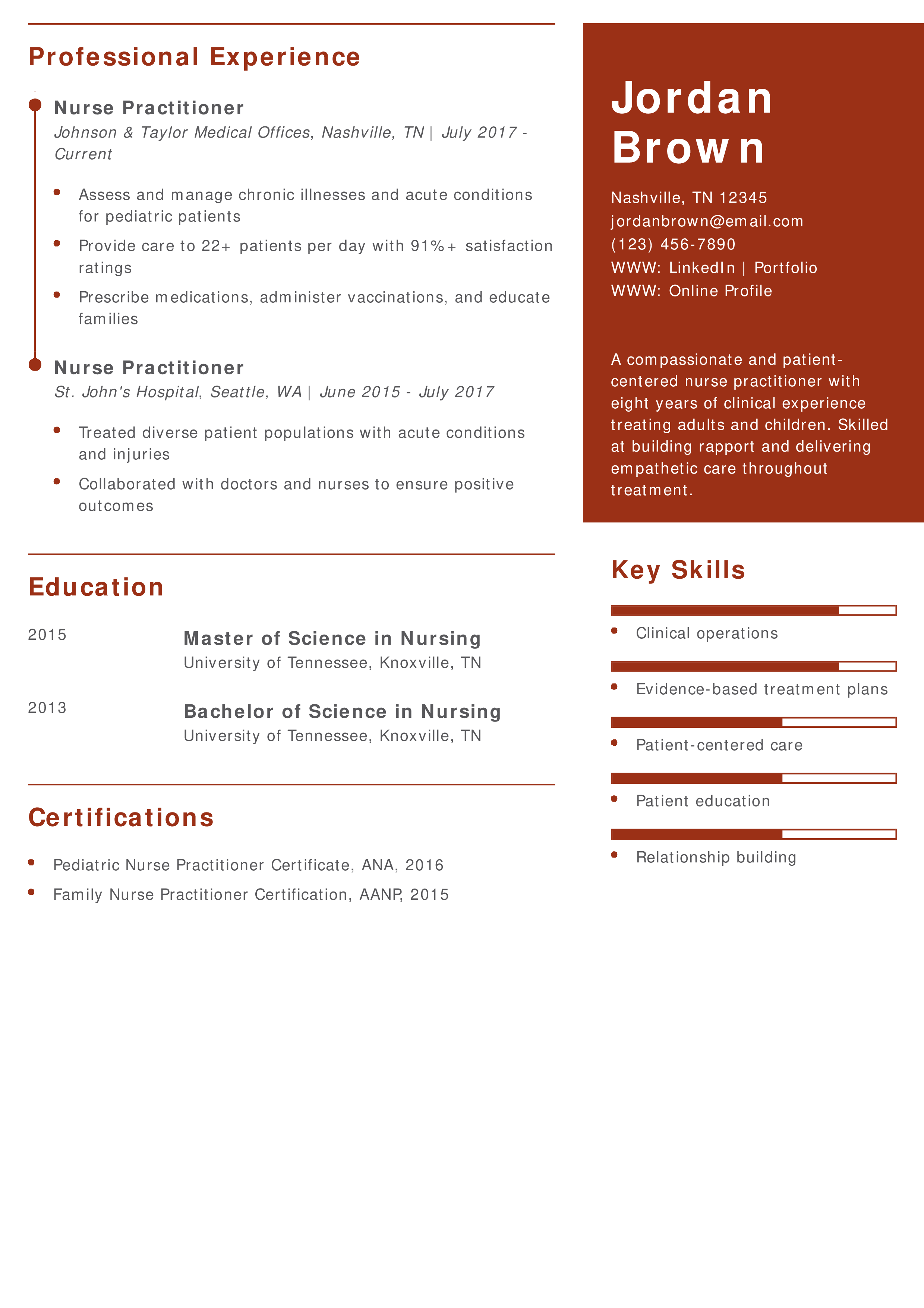 You’ll need to tailor your resume to the job description to increase the chances of getting it in front of a human reviewer. Include any relevant skills, qualifications, and other keywords, such as EHR software or pediatric nursing, from the job posting in your resume.
