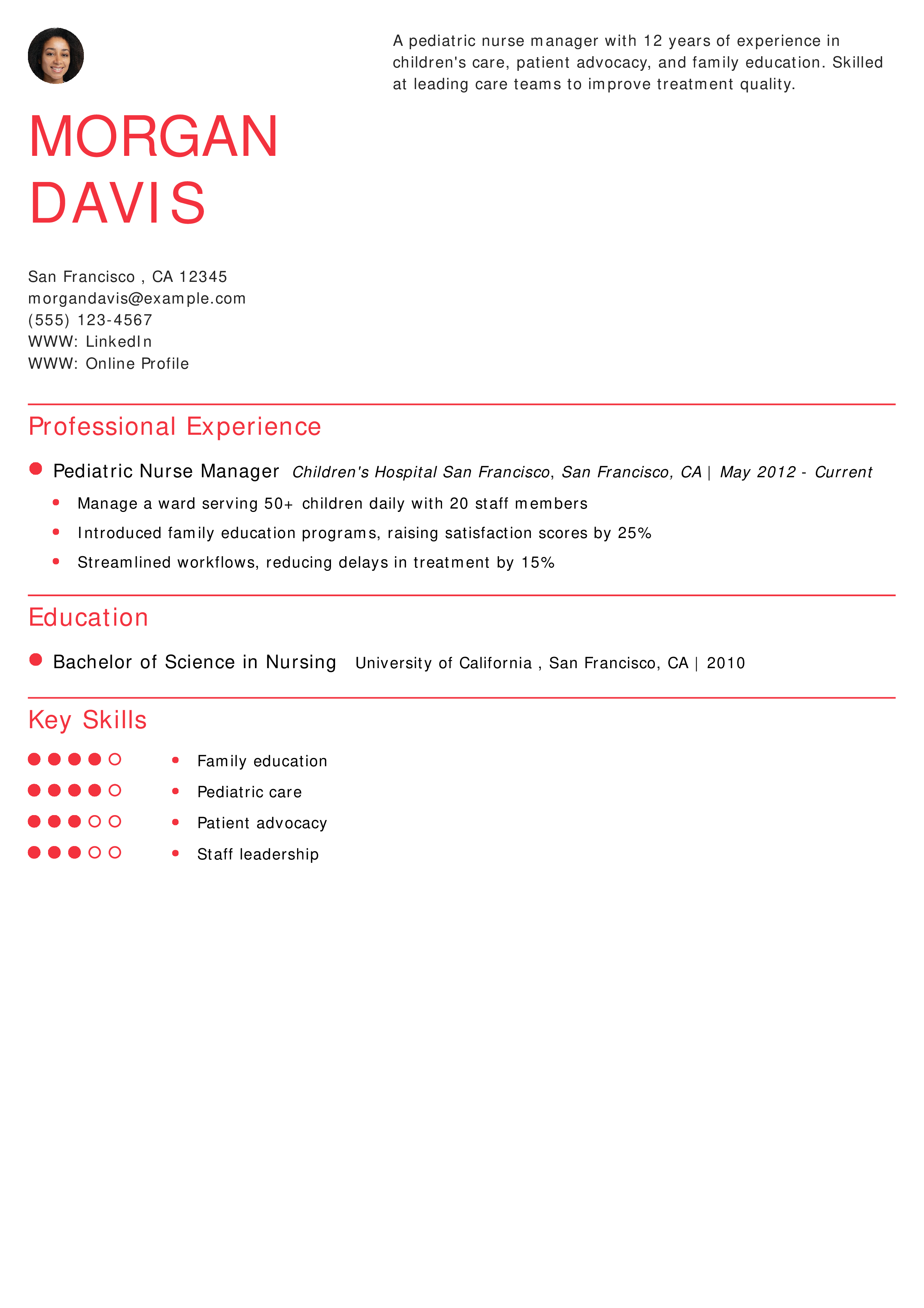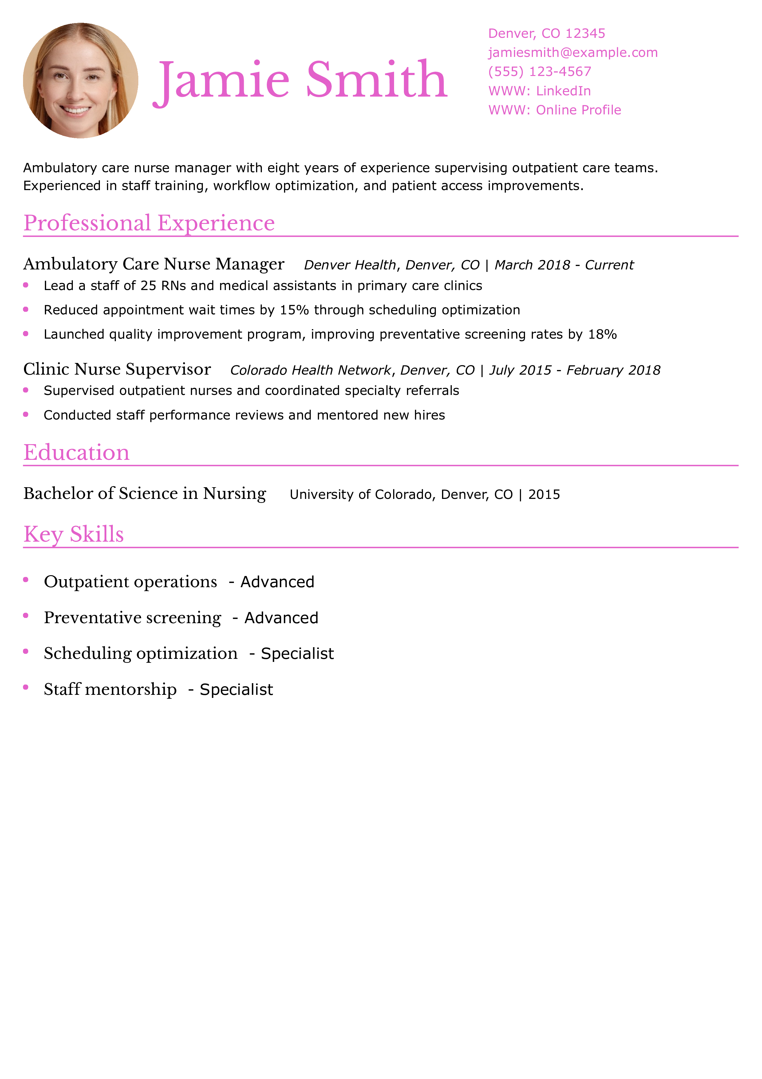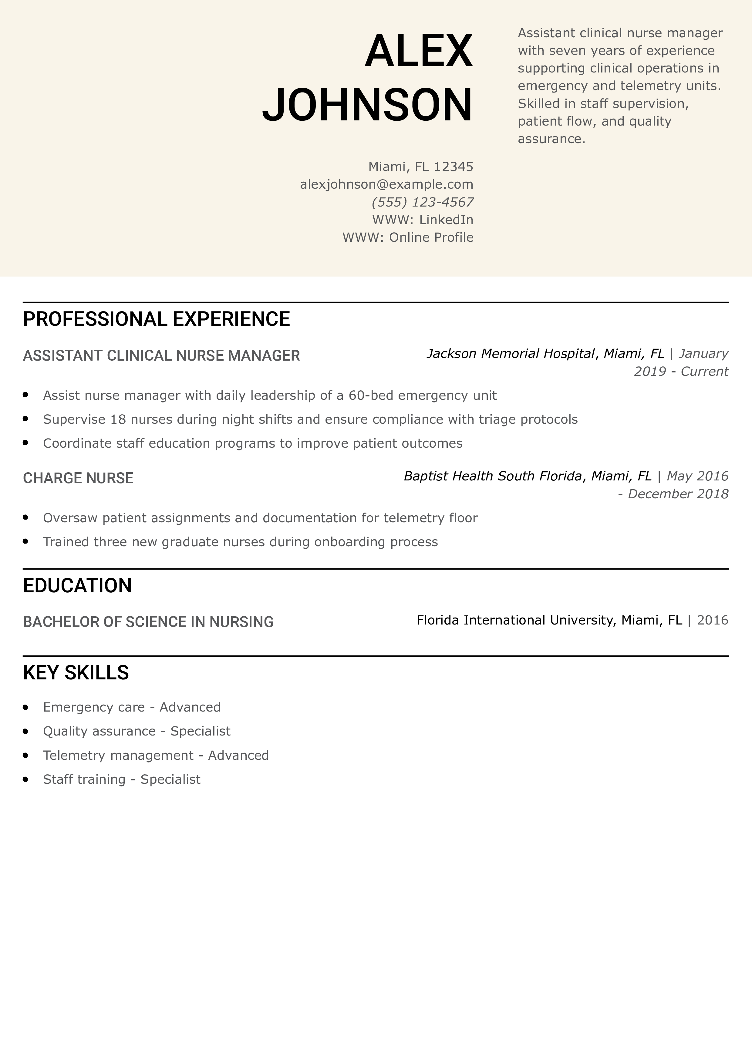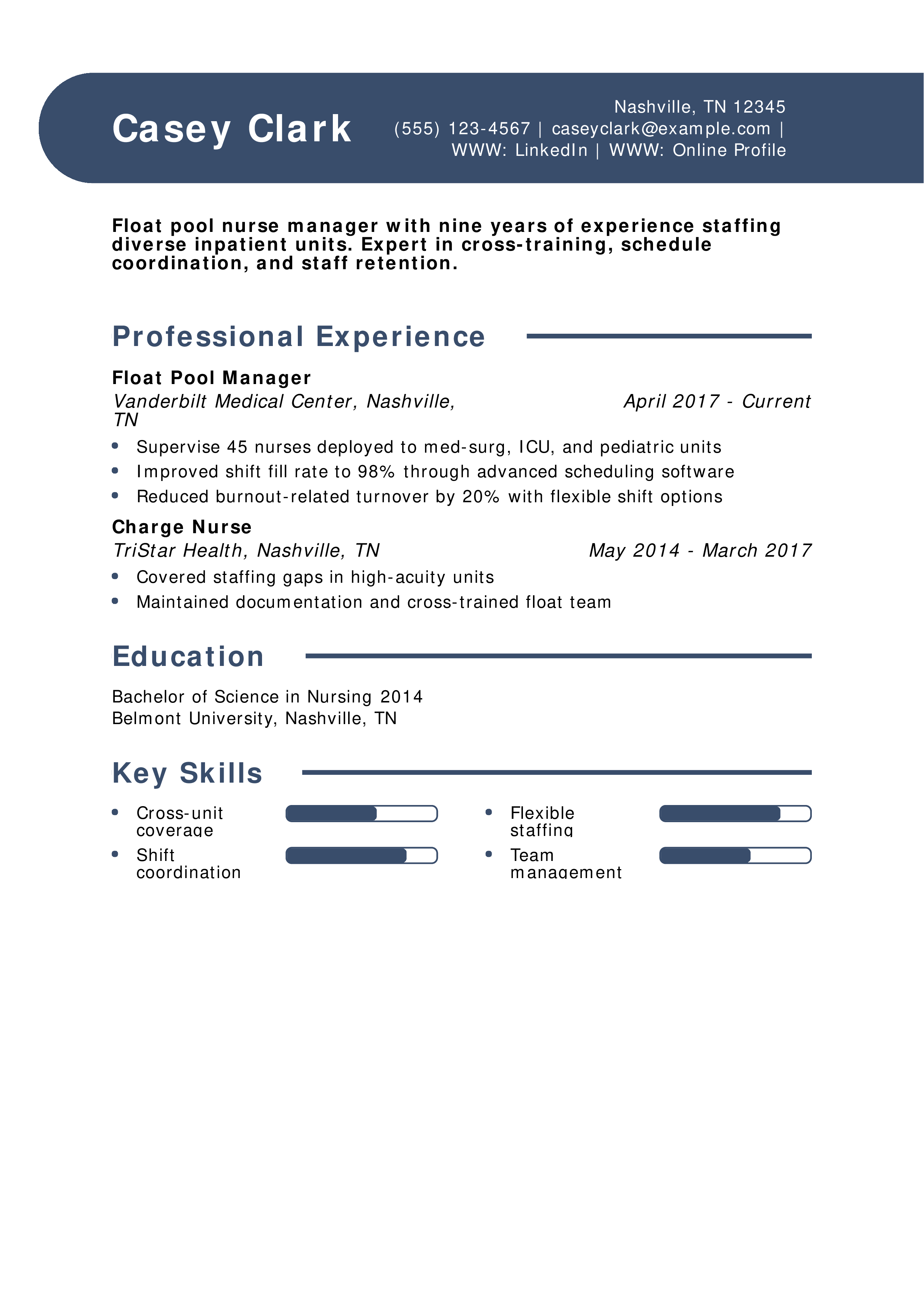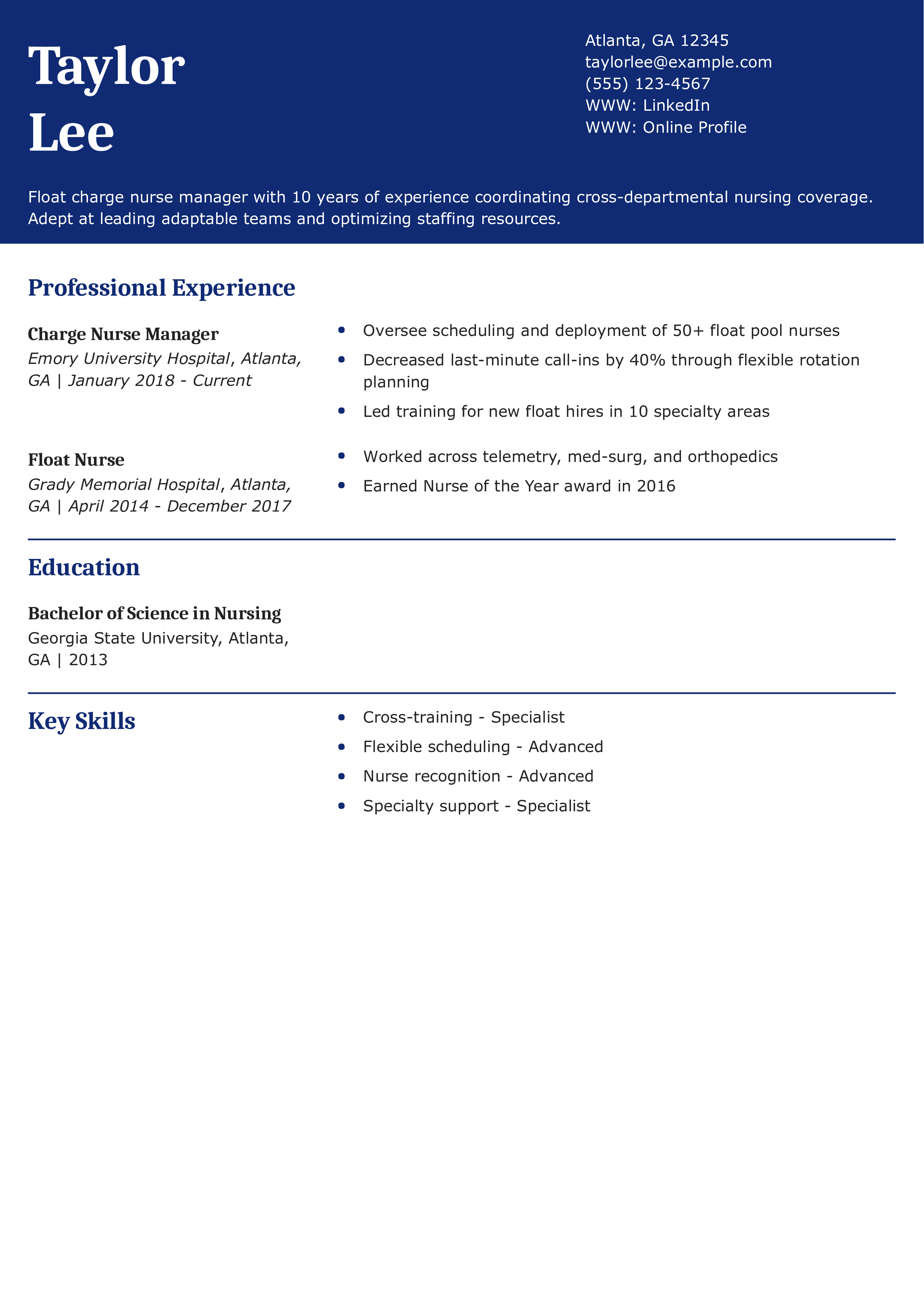 A one-page resume is ideal for most nurse manager positions, especially if you have less than 10 years of experience. For experienced professionals, a two-page resume may be appropriate, but only if it includes valuable, job-relevant content. Focus on showcasing your key achievements, certifications, and skills that align with the job description.