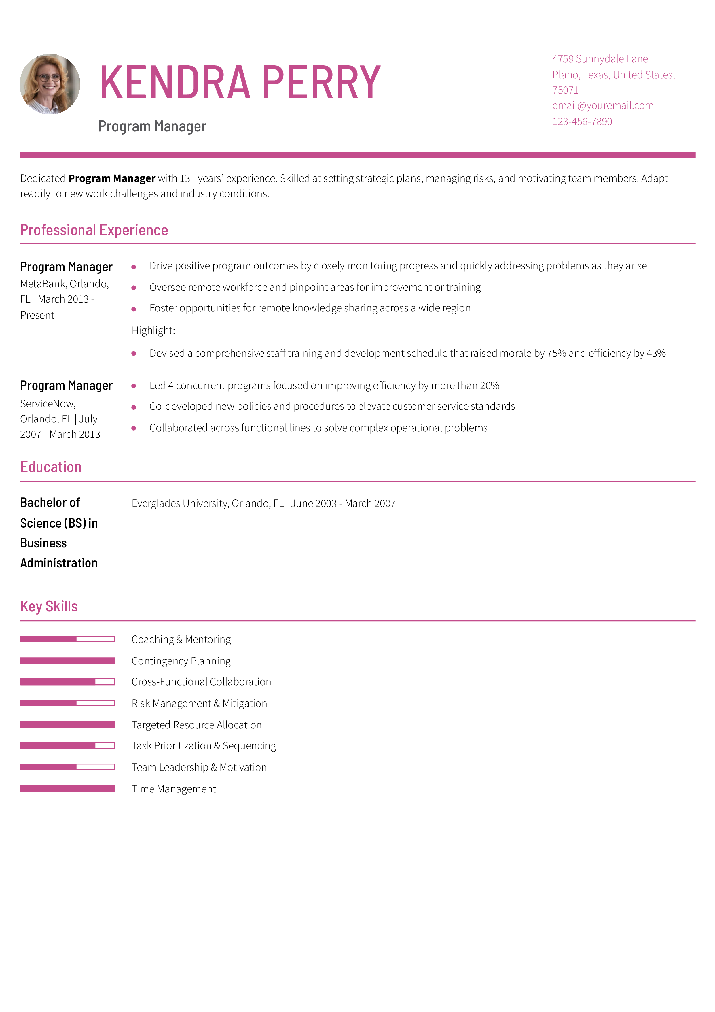 Senior Program Manager Resume Example