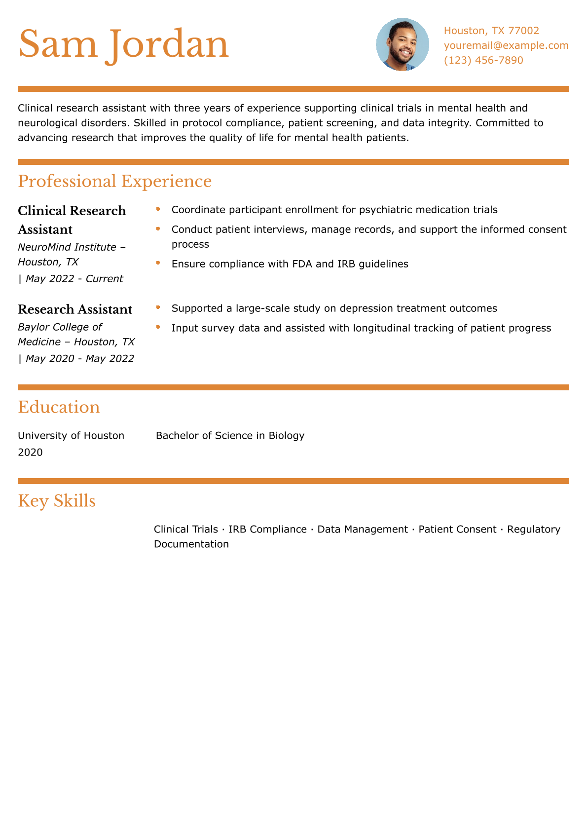 Clinical Research Assistant Resume Example