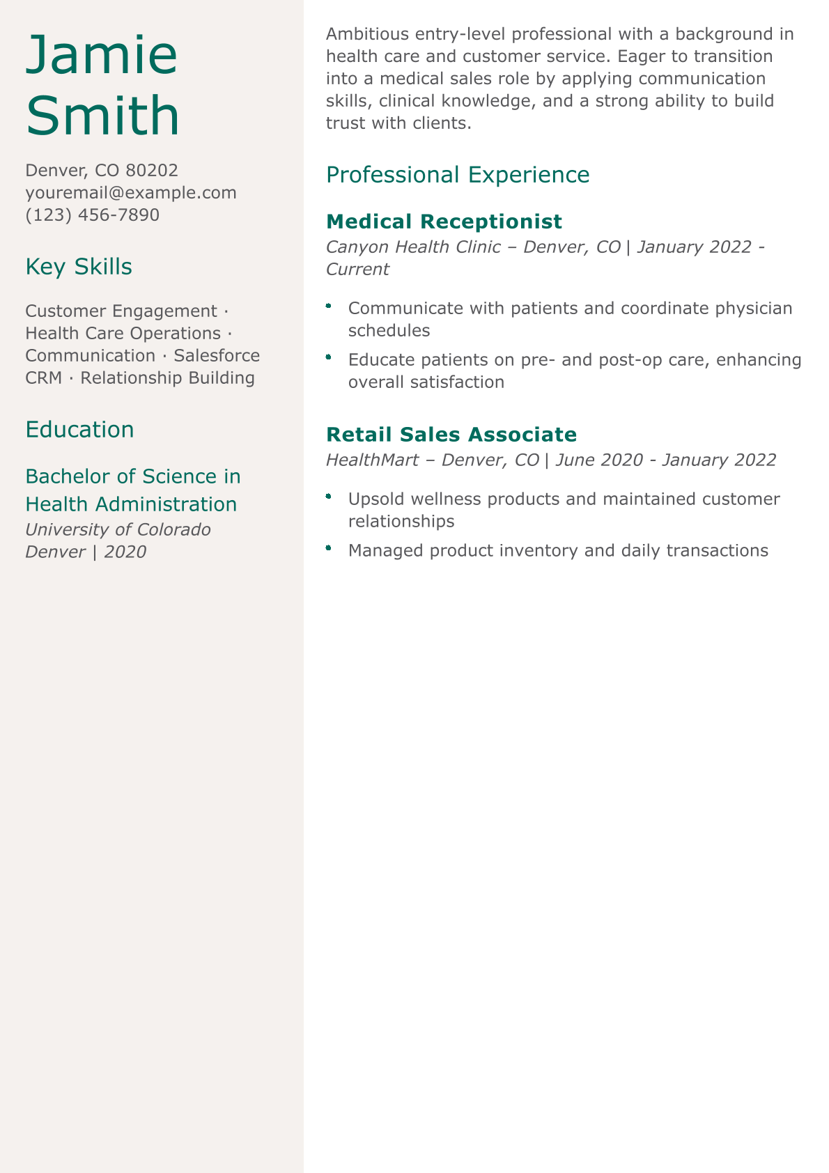 Entry-Level Medical Sales Resume Example