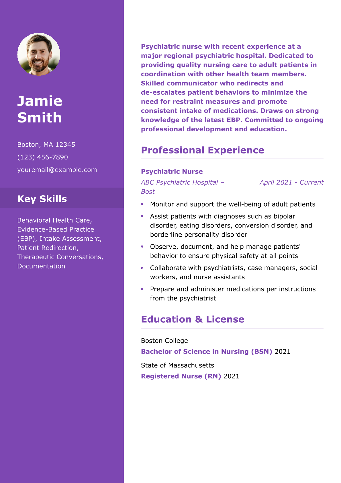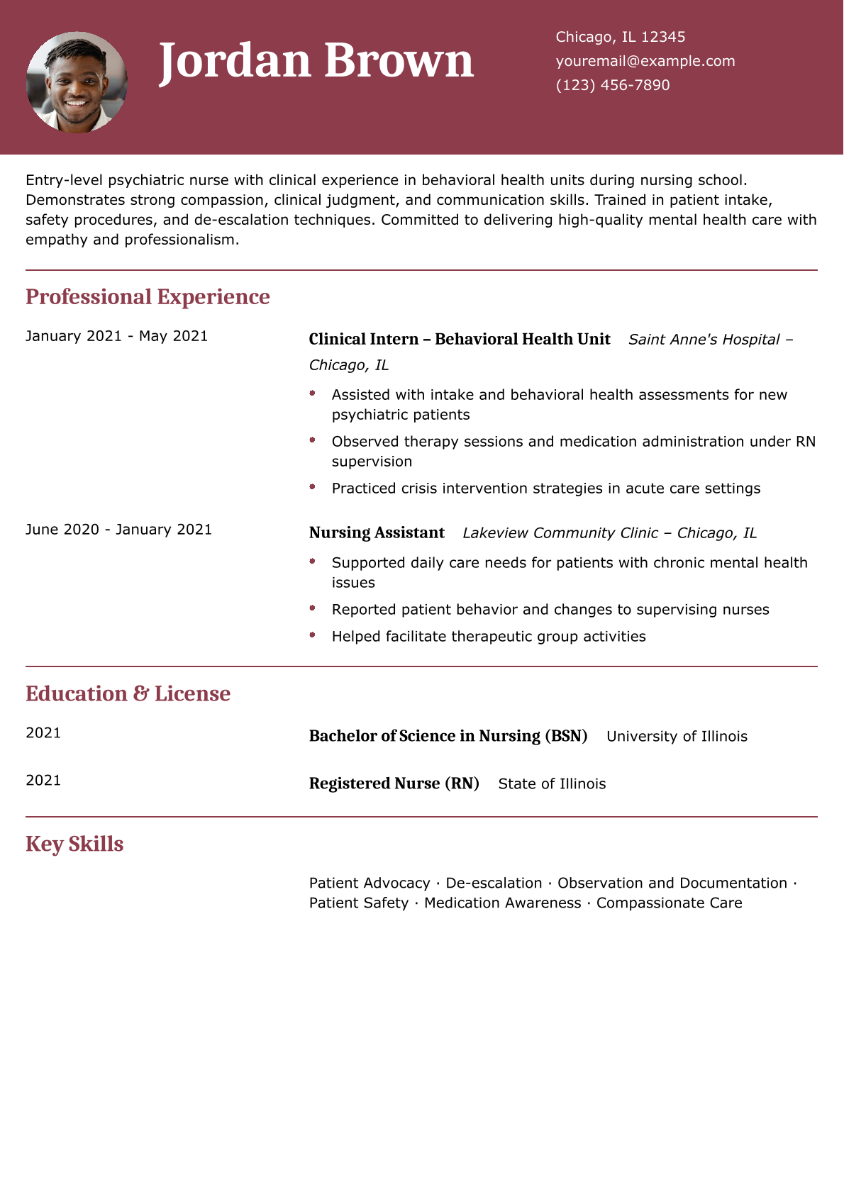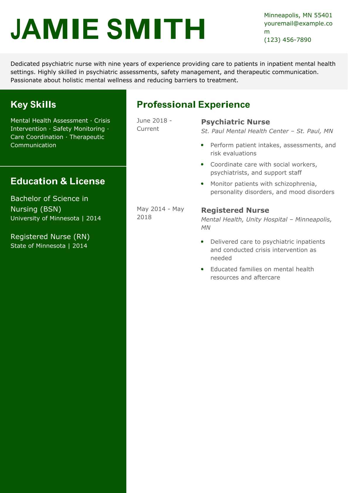 Entry-Level Psychiatric Nurse Resume Example