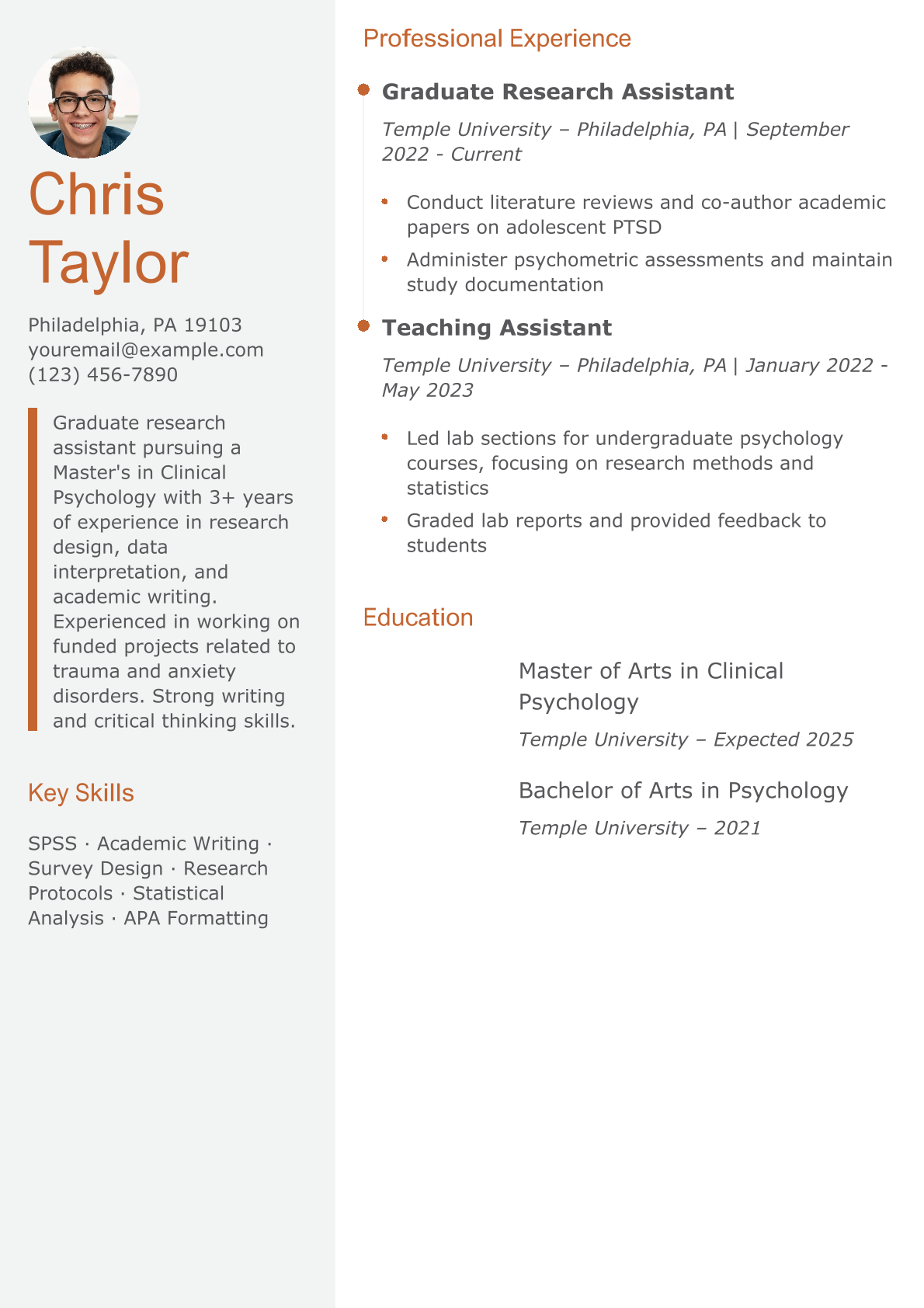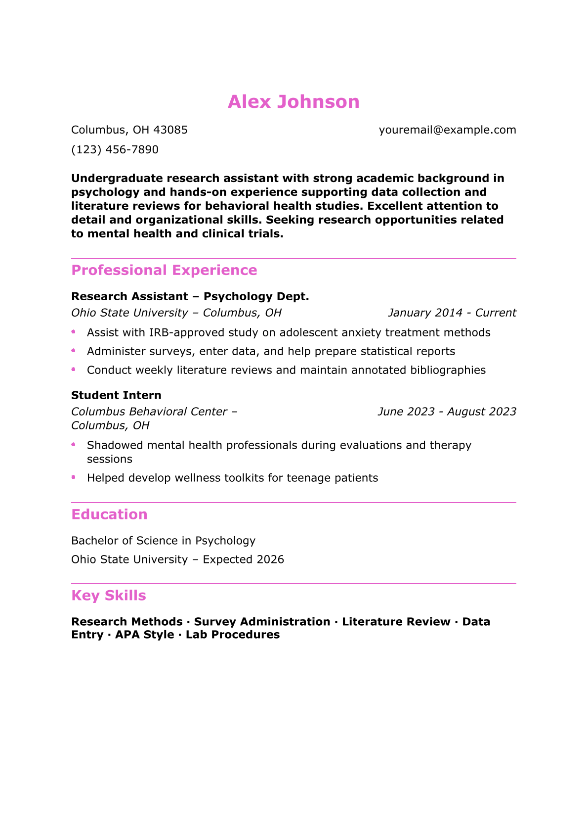 Psychology Research Assistant Resume Example